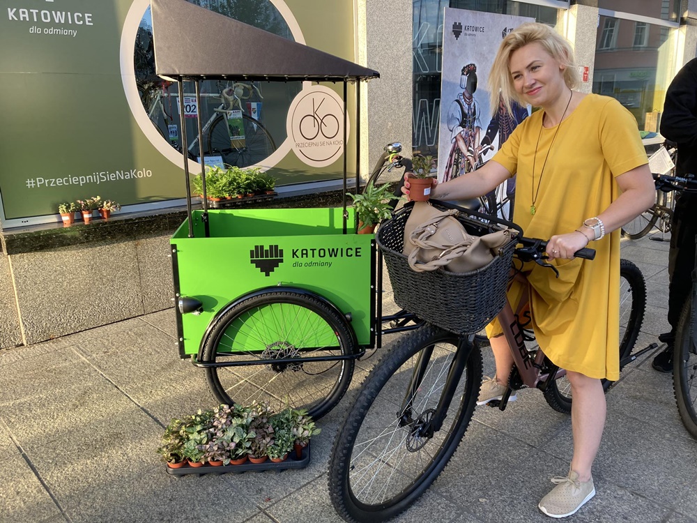 Dla tych, którzy dojeżdżają do pracy na rowerze, Mobilny Punkt na Rynku 13 jest miejscem, gdzie można odebrać swoją roślinę doniczkową. Ta inicjatywa trwała do godziny 9 rano.