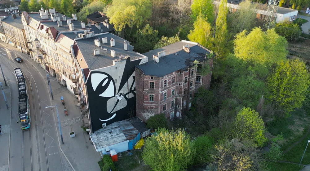 Nowa praca, która pojawiła się kilka dni temu na budynku przy ul. Gliwickiej 73, przedstawia Watchera, czyli Pana Peryskopa, postać malowaną od kilkunastu lat przez Noriakiego, tajemniczego streetartowca z Poznania.