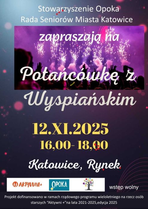 Stowarzyszenie Opoka oraz Rada Seniorów Miasta Katowice zapraszają mieszkańców na wyjątkowe wydarzenie – „Potańcówkę z Wyspiańskim”, która odbędzie się 12 listopada 2025 roku na Rynku w Katowicach. Start imprezy zaplanowano na godzinę 16:00, a zabawa potrwa do 18:00.