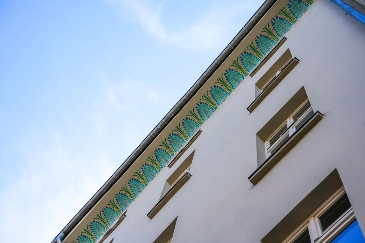 Drugi etap modernizacji zakończył się montażem dekoracyjnego ornamentu na gzymsie, nawiązującego do stylu secesyjnego. Motywy roślinne w odcieniach niebieskiego przyciągają wzrok i stanowią ozdobę frontowej elewacji.