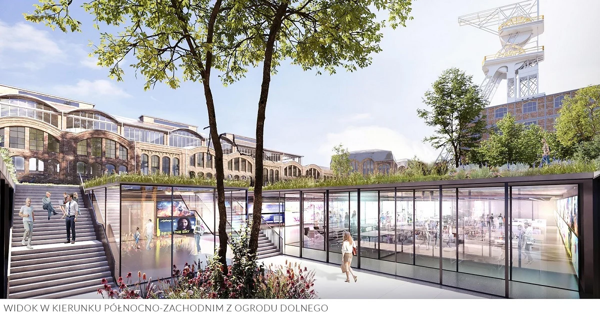 – Kluczowe dla projektu były warstwa historyczna tego miejsca oraz jego nowoczesne, innowacyjne przeznaczenie. Stąd nasza propozycja – dostrzegająca najbliższe otoczenie, a więc sąsiedztwo Nikiszowca i Giszowca oraz kompleksowy charakter istniejącej zabudowy po KWK Wieczorek, który z punktu widzenia kulturowego jest dziełem dokonanym – aby zintegrować te istniejące przestrzenie z nową funkcją. Dlatego zaprojektowaliśmy duży park, który integruje te budynki. I trochę wzorem paryskiego Luwru, część dolną z ogrodem, która będzie zawierała funkcje dodane, dzięki czemu na powierzchni układ budynków pozostanie niezmieniony – przedstawił założenia projektu architekt Andrzej Chołdzyński.