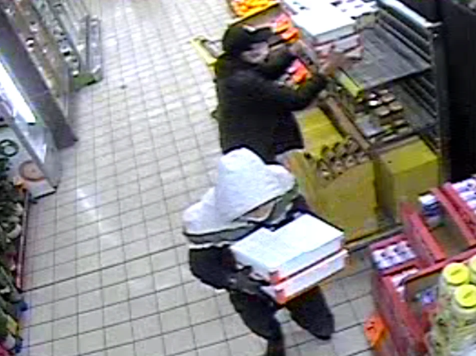 Policja publikuje wizerunek podejrzewanych o kradzież czekolady w markecie spożywczym.