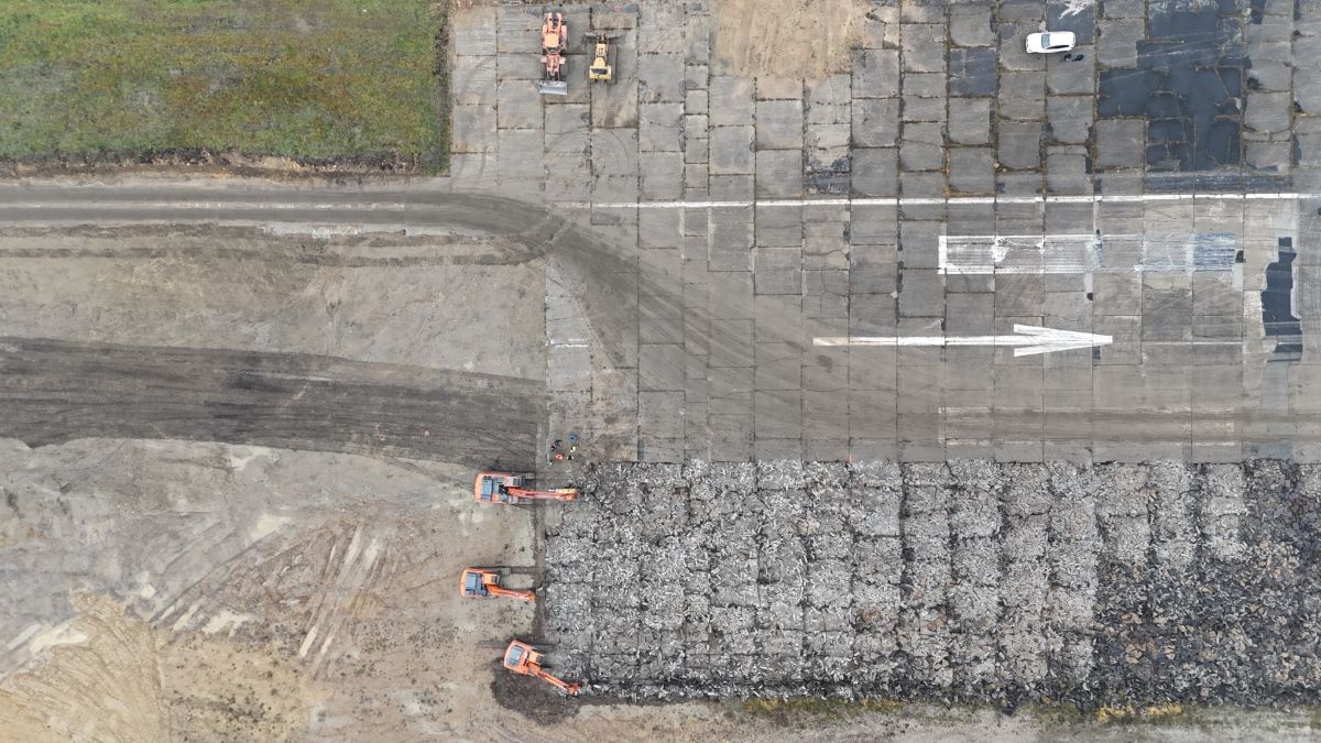 Aby nie zakłócać bieżącej działalności lotniska, przygotowano trawiasty pas, który tymczasowo przejmuje obsługę ruchu lotniczego.