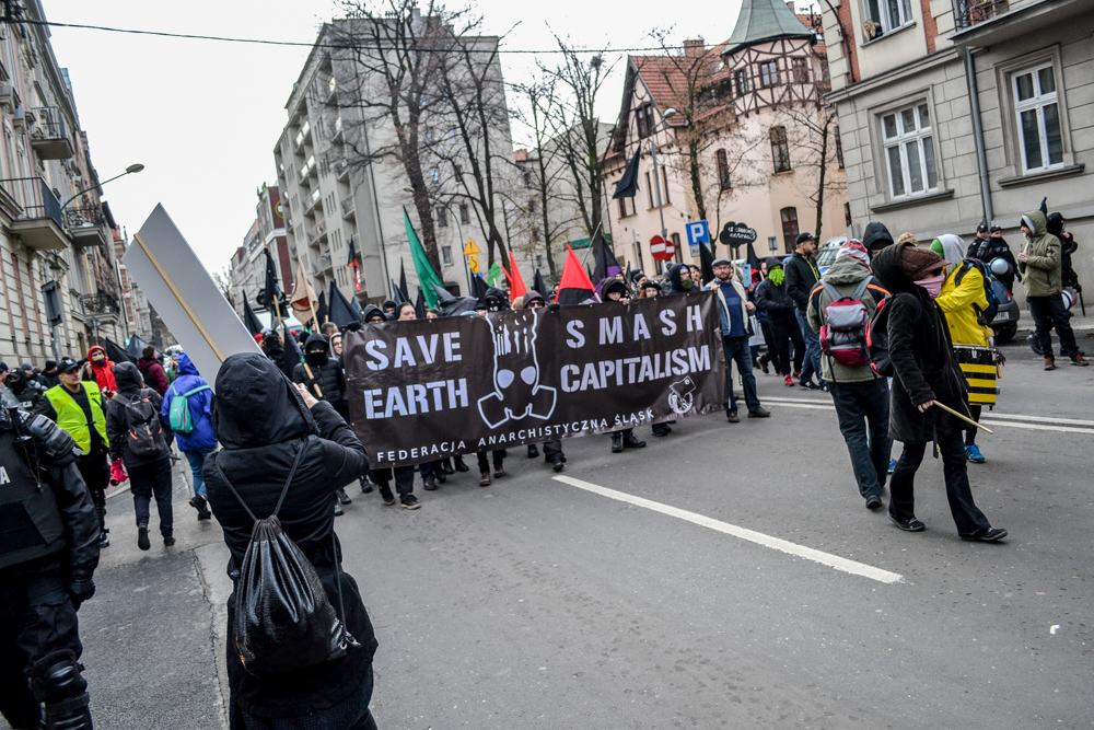 “Zmiany trzeba wprowadzać teraz”, “Nie dla węgla brunatnego”, “Save Humans” i inne hasła padały z głośników, ust manifestantów i były widoczne na transparentach. Na ulicę wyszli ludzie ze Śląska, całej Polski i ze świata. Trasa była długa, począwszy od placu Wolności, przez ul. Sokolską, pl. Grunwaldzki i okolice Spodka, gdzie grupa zatrzymała się na dłużej (blokując m.in. komunikację miejską), aż po okolice pl. Szewczyka.