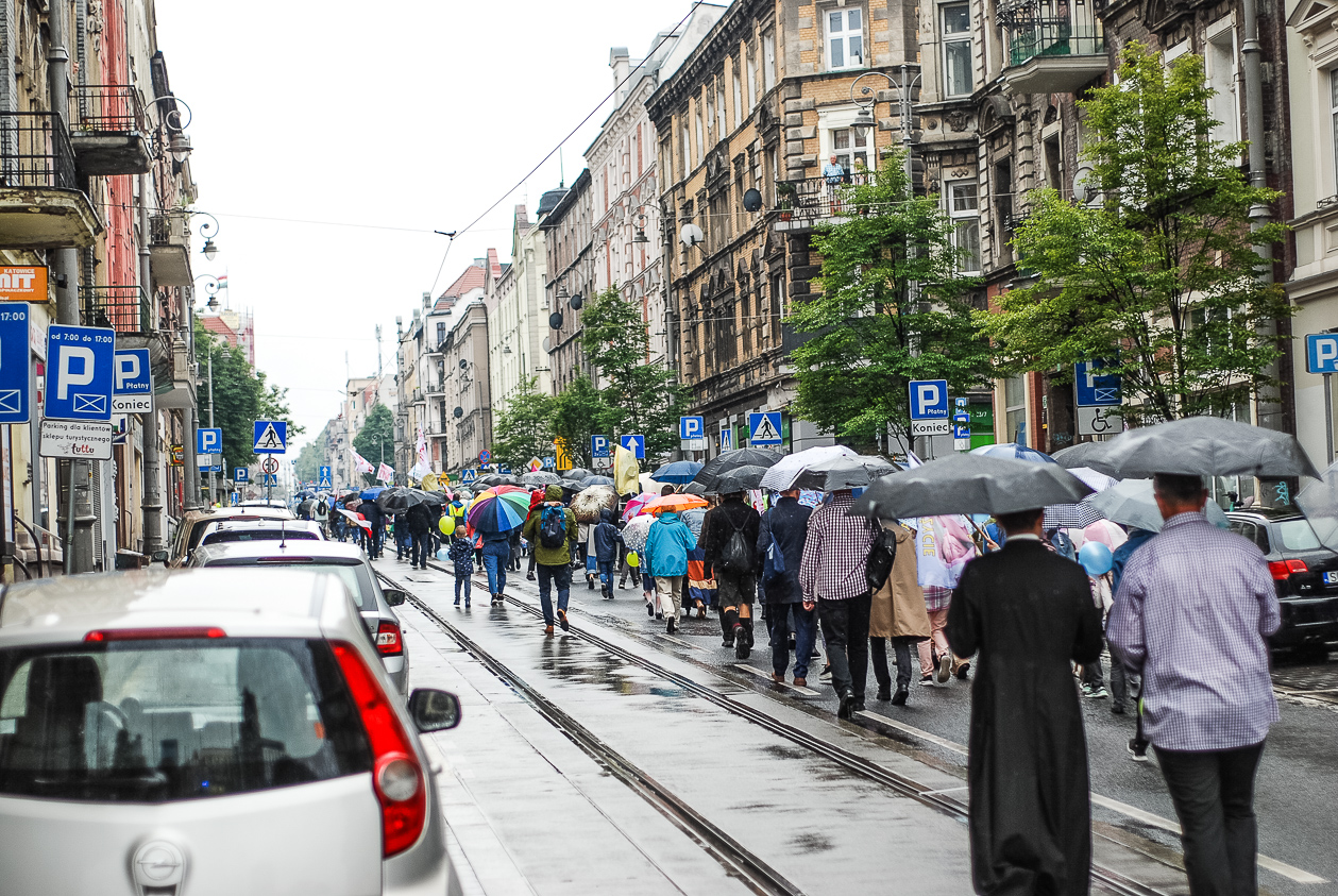 Choć pogoda zdecydowanie nie dopisała, po mszy w Archikatedrze Chrystusa Króla około 200 osób wzięło udział w zaplanowanym marszu. Zgromadzona grupa, w asyście służb porządkowych zabezpieczających trasę przemarszu, wspierana przez orkiestrę dętą przeszła na rynek, a następnie, wzdłuż ulicy Kościuszki do parku, gdzie rozstawiono scenę i małe miasteczko namiotowe.