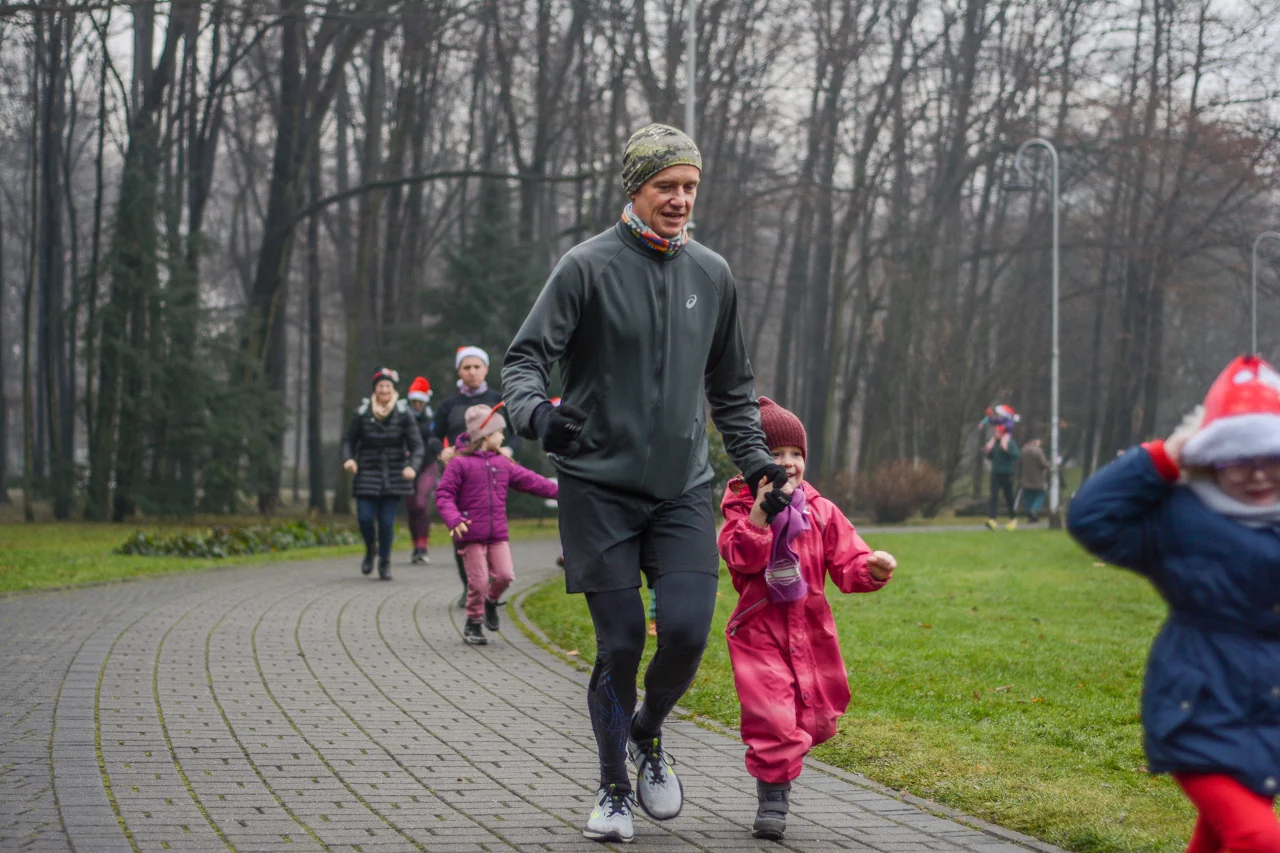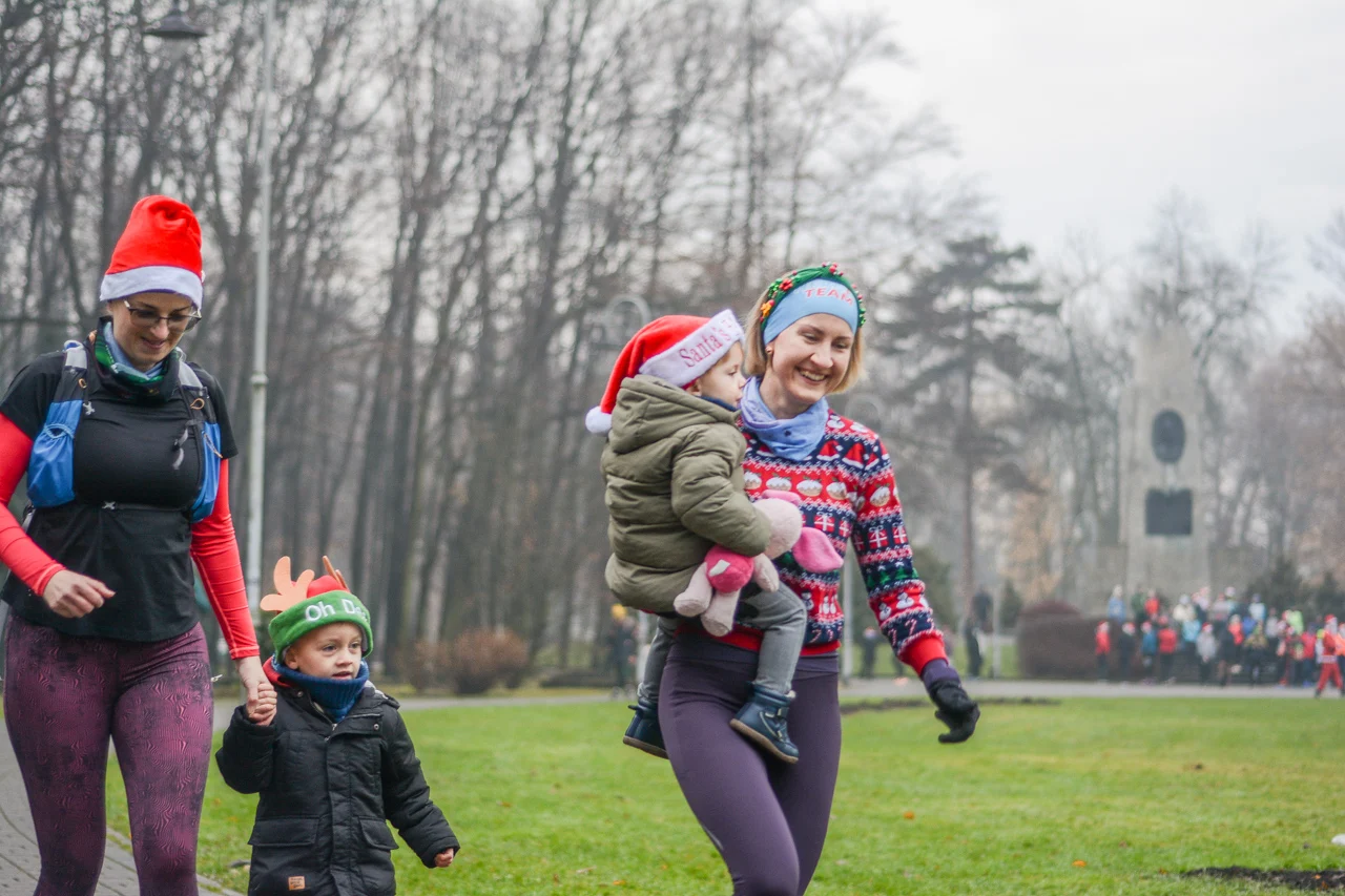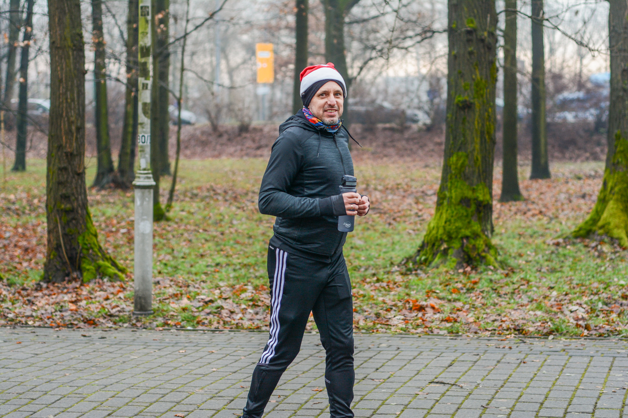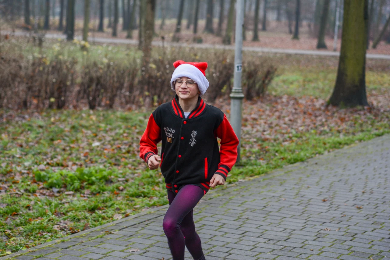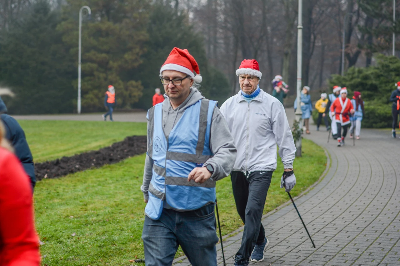 Dziś już z daleka było widać, że mikołajkowa edycja przyciągnęła sporo uczestników. Na starcie stanęli najpierw najmłodsi uczestnicy, w specjalnym okrążeniu przygotowane właśnie dla nich. Kilka minut po 9:00 ruszył bieg i marsz na standardowym dystansie – 5 kilometrów. Kolorowy tłum biegaczy, chodziarzy, spacerowiczów i kijkarzy startujących w kategorii nordic walking, wyruszył na parkowe alejki.