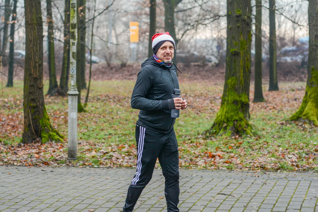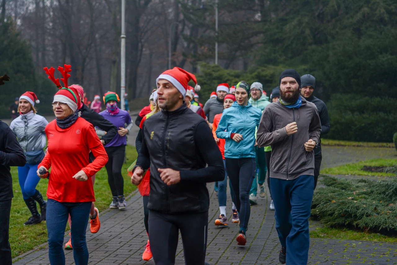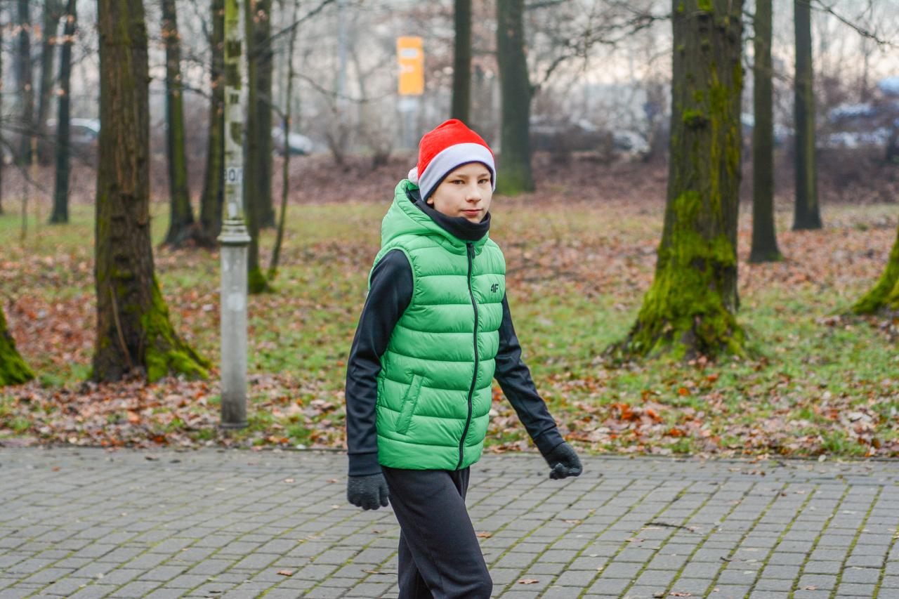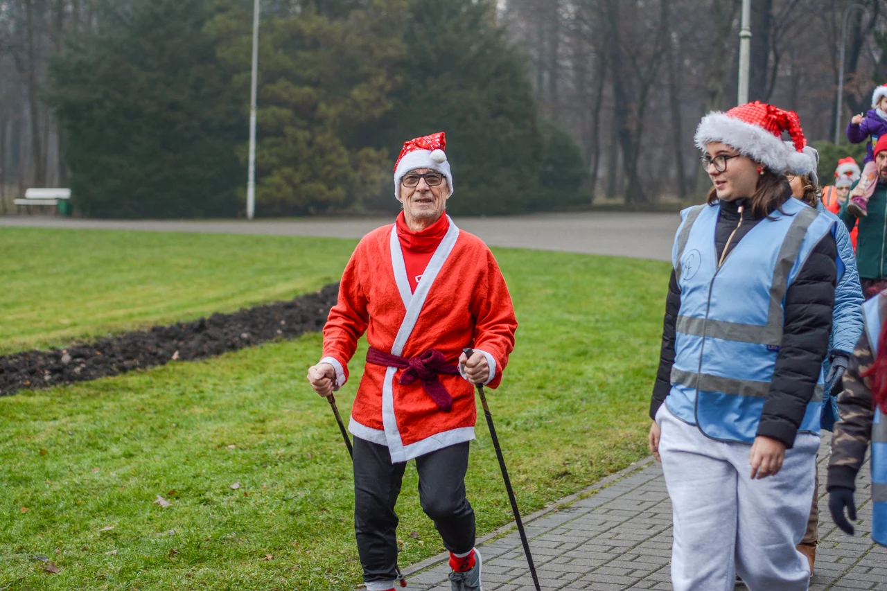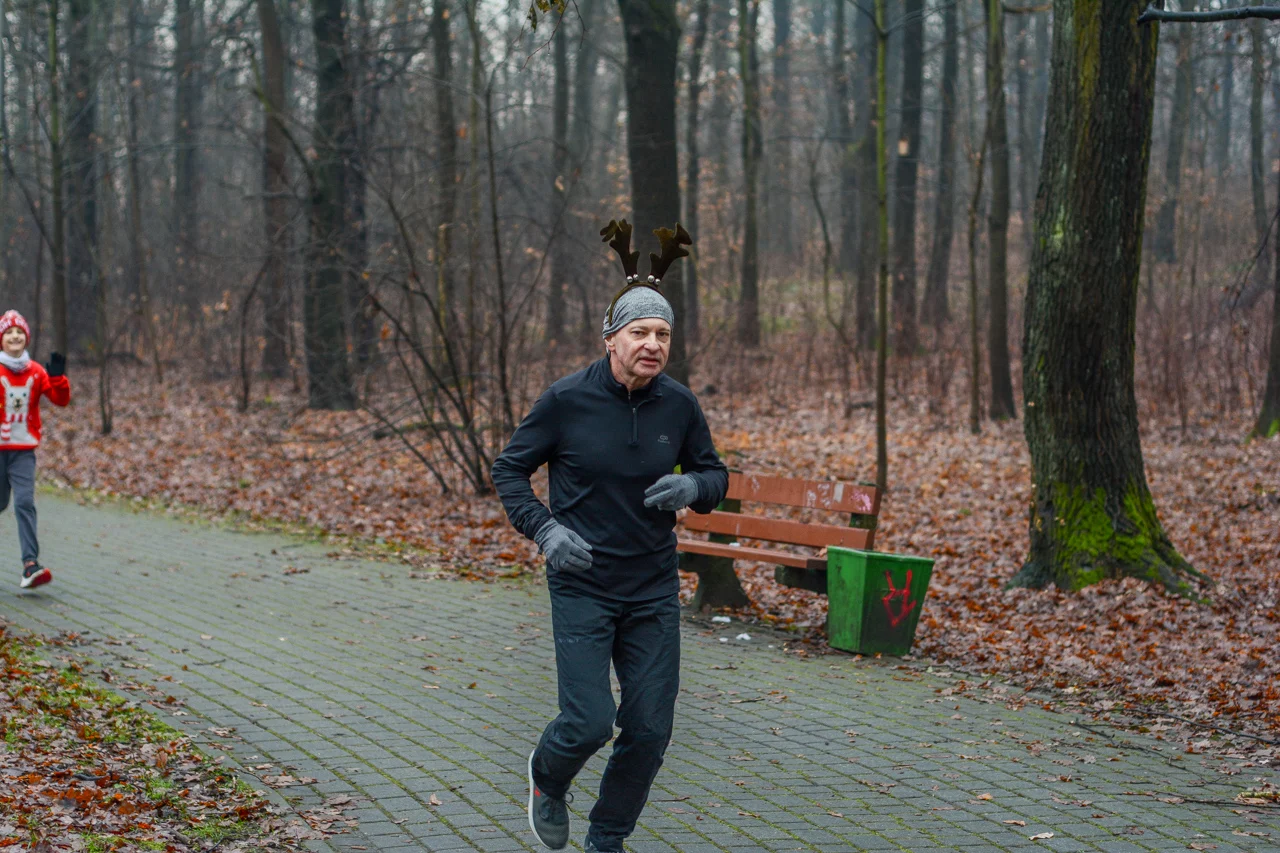 Dziś już z daleka było widać, że mikołajkowa edycja przyciągnęła sporo uczestników. Na starcie stanęli najpierw najmłodsi uczestnicy, w specjalnym okrążeniu przygotowane właśnie dla nich. Kilka minut po 9:00 ruszył bieg i marsz na standardowym dystansie – 5 kilometrów. Kolorowy tłum biegaczy, chodziarzy, spacerowiczów i kijkarzy startujących w kategorii nordic walking, wyruszył na parkowe alejki.