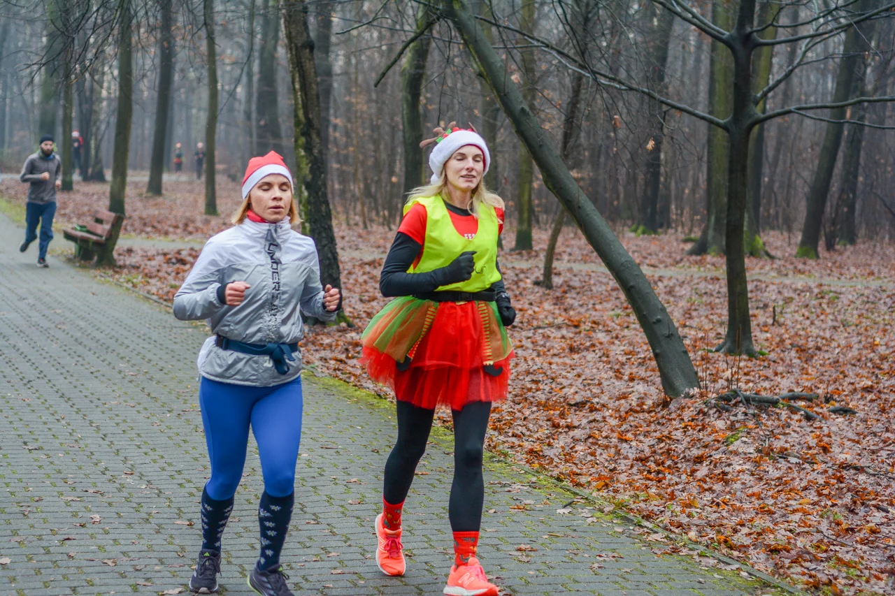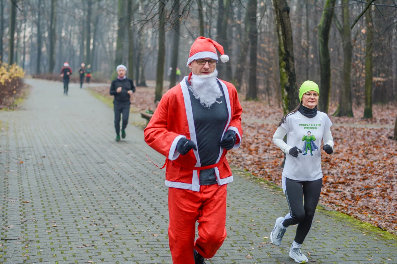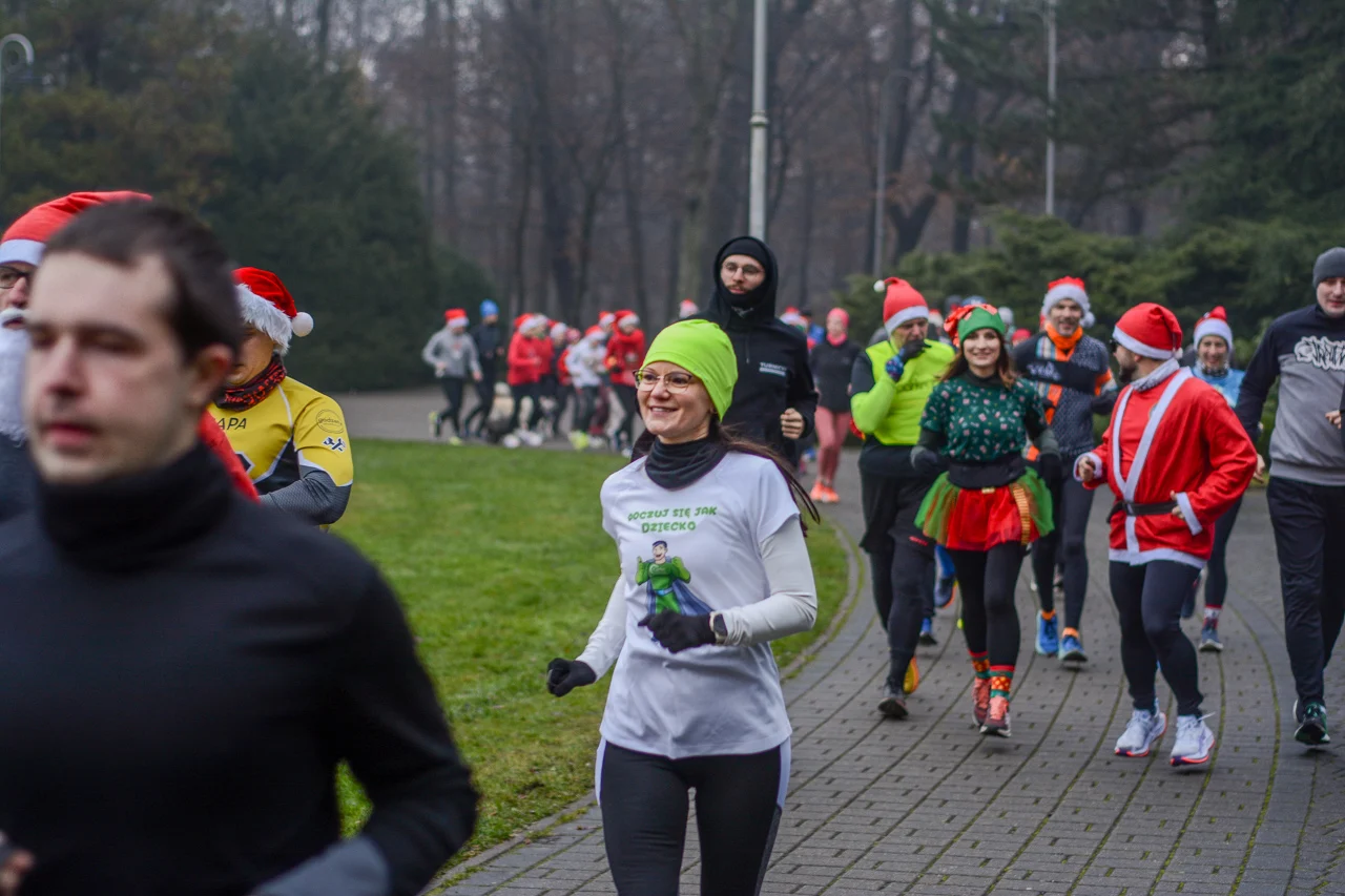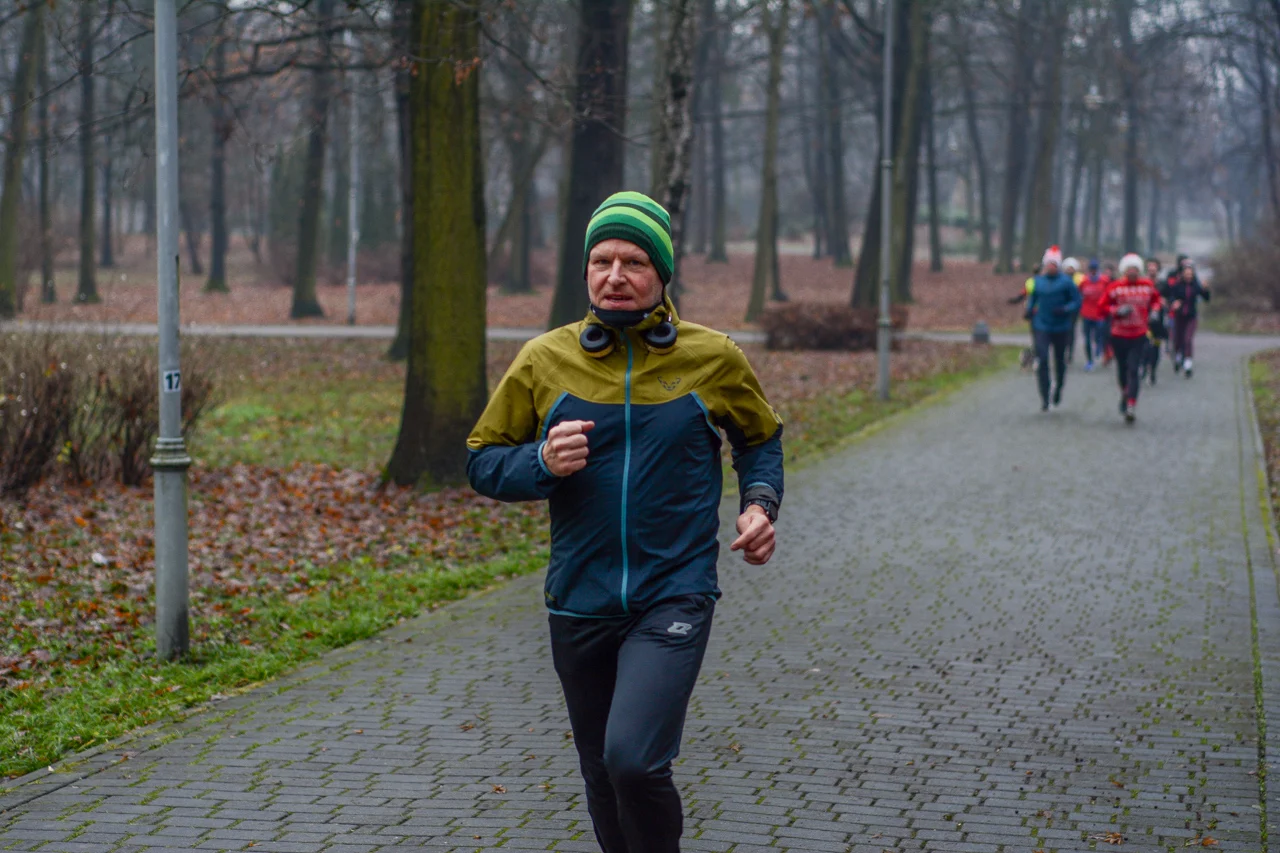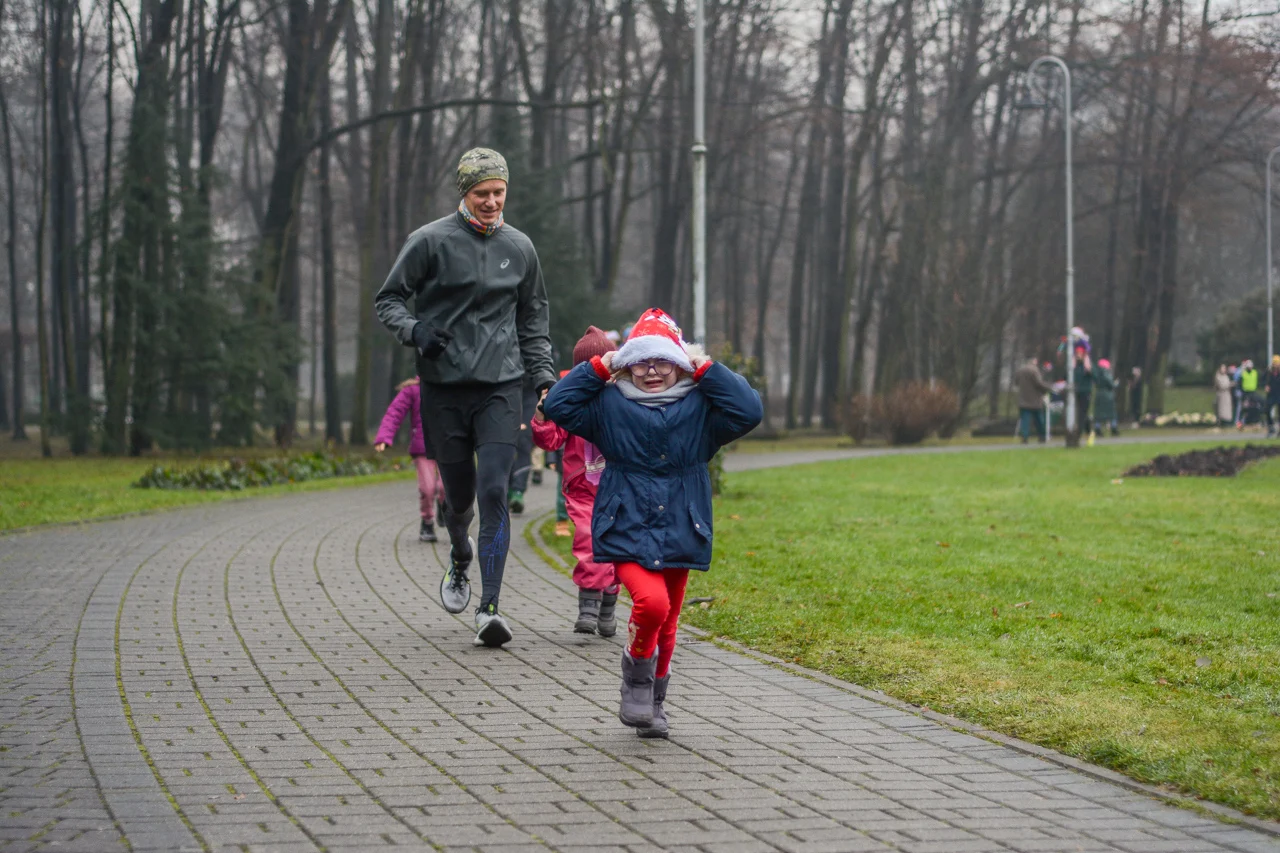 Dziś już z daleka było widać, że mikołajkowa edycja przyciągnęła sporo uczestników. Na starcie stanęli najpierw najmłodsi uczestnicy, w specjalnym okrążeniu przygotowane właśnie dla nich. Kilka minut po 9:00 ruszył bieg i marsz na standardowym dystansie – 5 kilometrów. Kolorowy tłum biegaczy, chodziarzy, spacerowiczów i kijkarzy startujących w kategorii nordic walking, wyruszył na parkowe alejki.