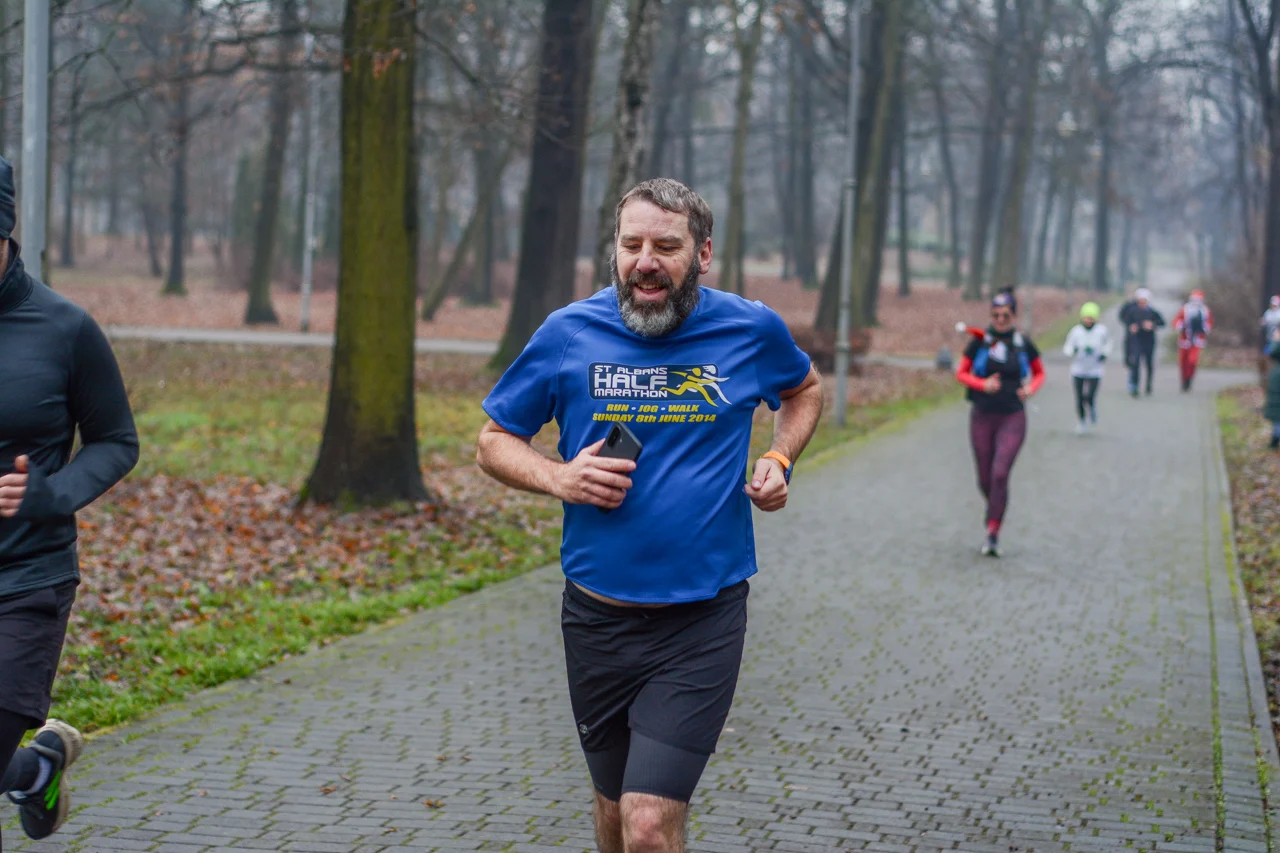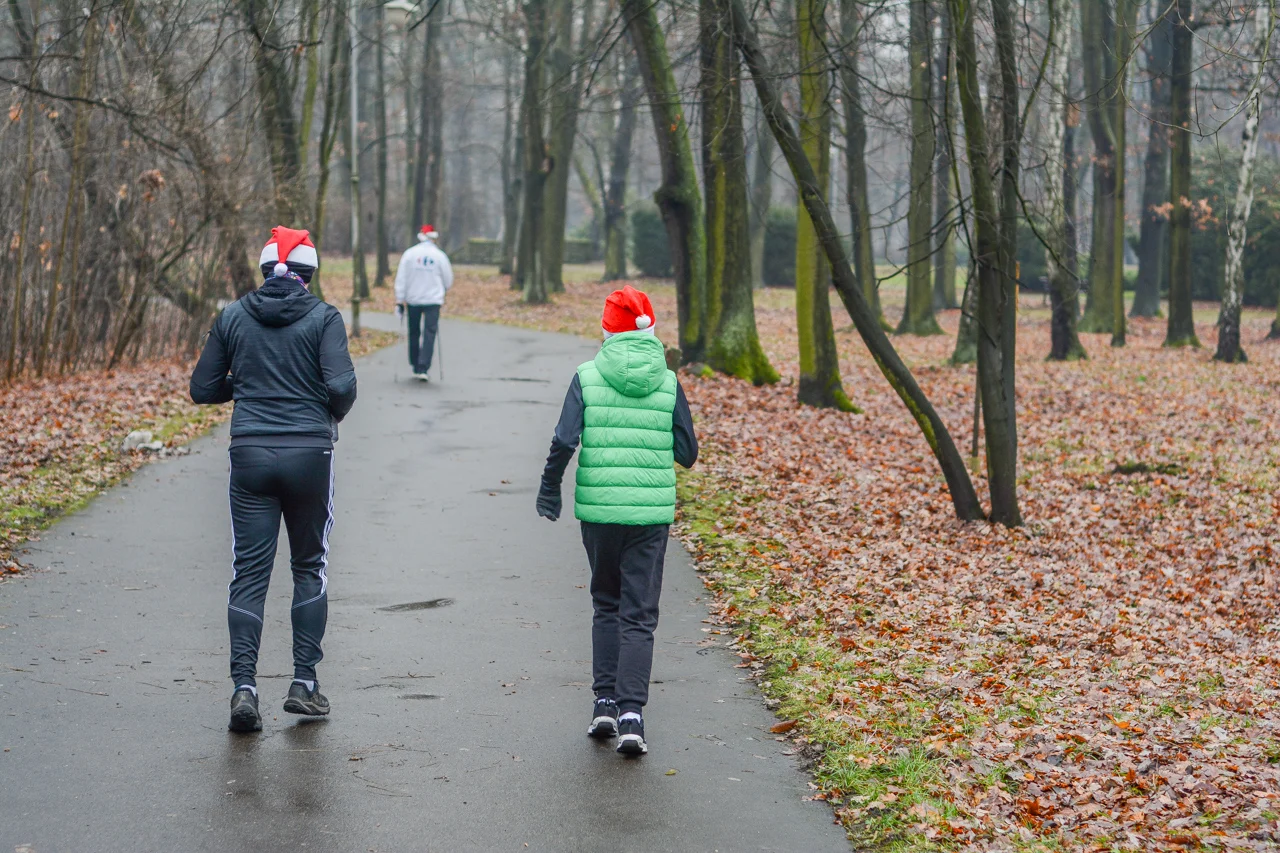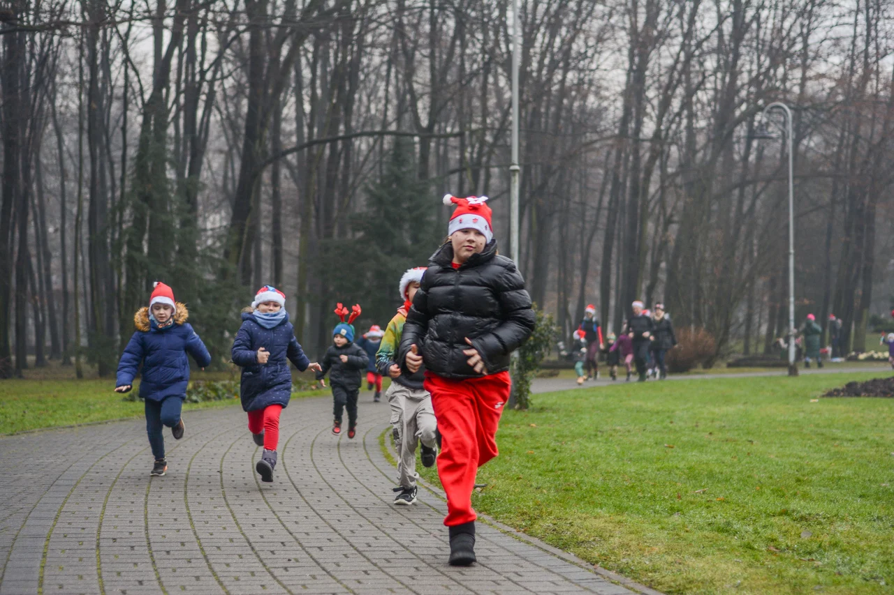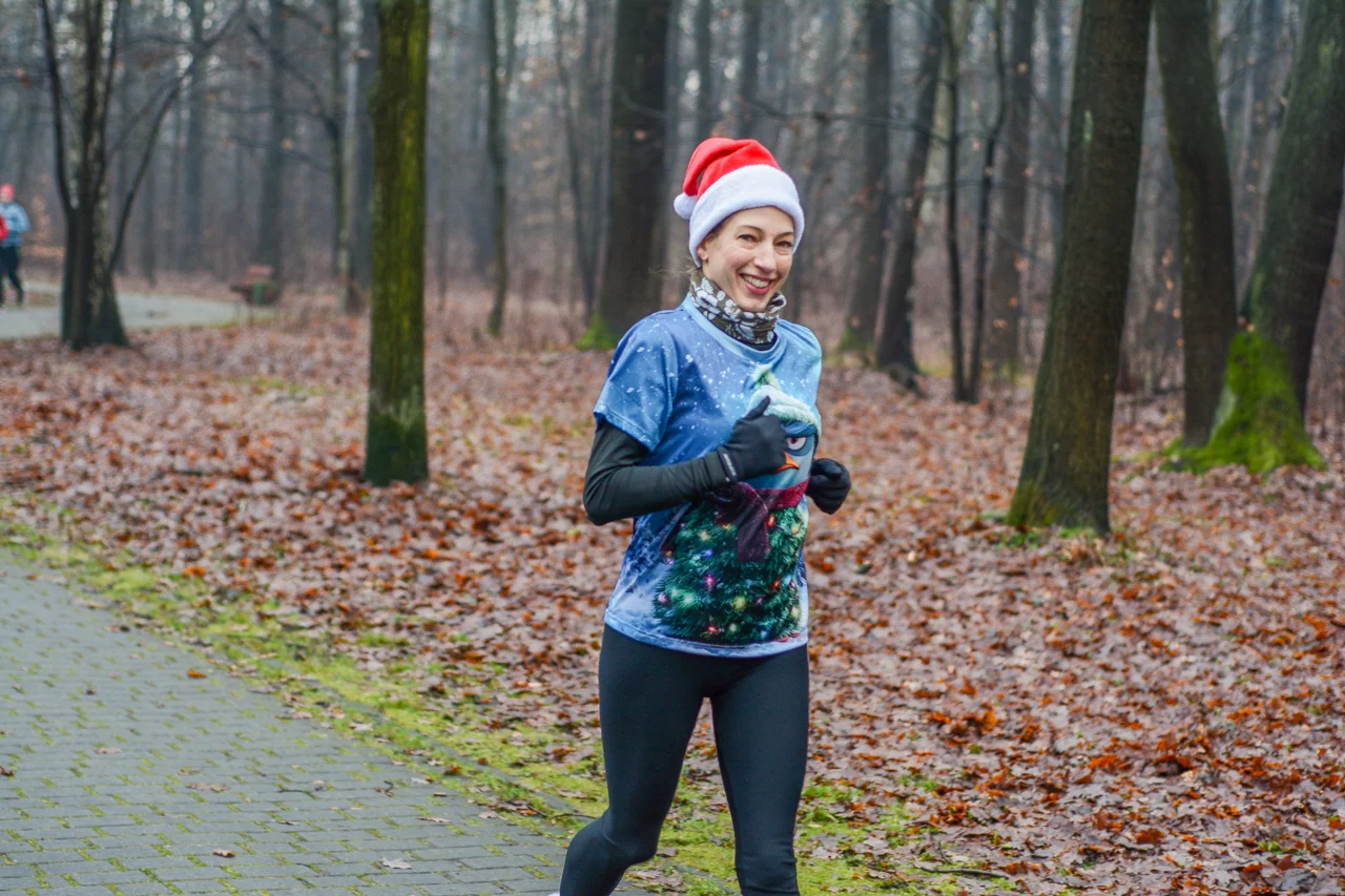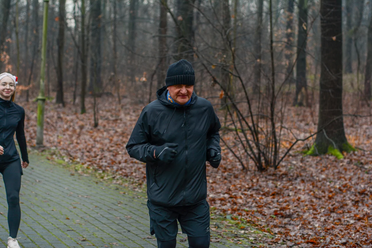 Dziś już z daleka było widać, że mikołajkowa edycja przyciągnęła sporo uczestników. Na starcie stanęli najpierw najmłodsi uczestnicy, w specjalnym okrążeniu przygotowane właśnie dla nich. Kilka minut po 9:00 ruszył bieg i marsz na standardowym dystansie – 5 kilometrów. Kolorowy tłum biegaczy, chodziarzy, spacerowiczów i kijkarzy startujących w kategorii nordic walking, wyruszył na parkowe alejki.