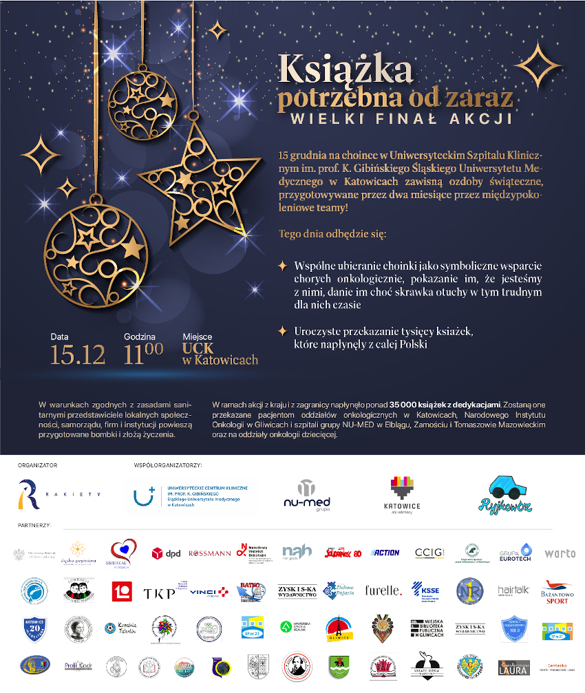 Książki Zostaną przekazane pacjentom oddziałów onkologicznych w Katowicach, Narodowego Instytutu Onkologii w Gliwicach i szpitali grupy NU-MED w Elblągu, Zamościu i Tomaszowie Mazowieckim oraz na oddziały dziecięce.