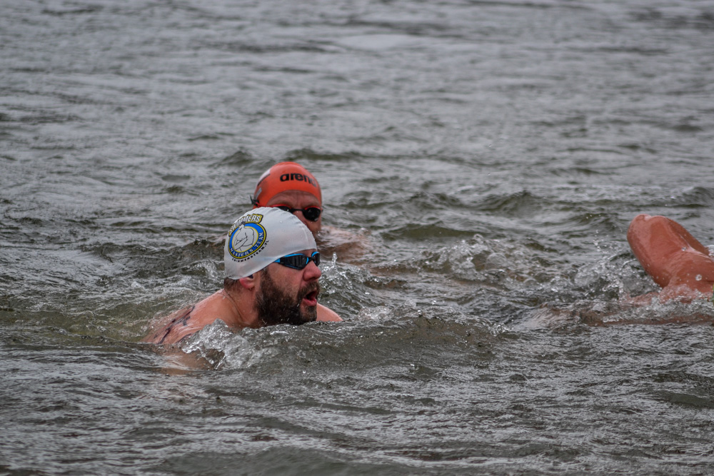 Mieliśmy okazję obserwować pierwszą grupę, która wystartowała na dystansie 1 kilometra. 1000 metrów, woda o temperaturze 1oC i taka sama w przypadku powietrza. Było ciężko, ale każdy wyszedł z wody zadowolony. Mimo iż niektórzy słaniali się na nogach.