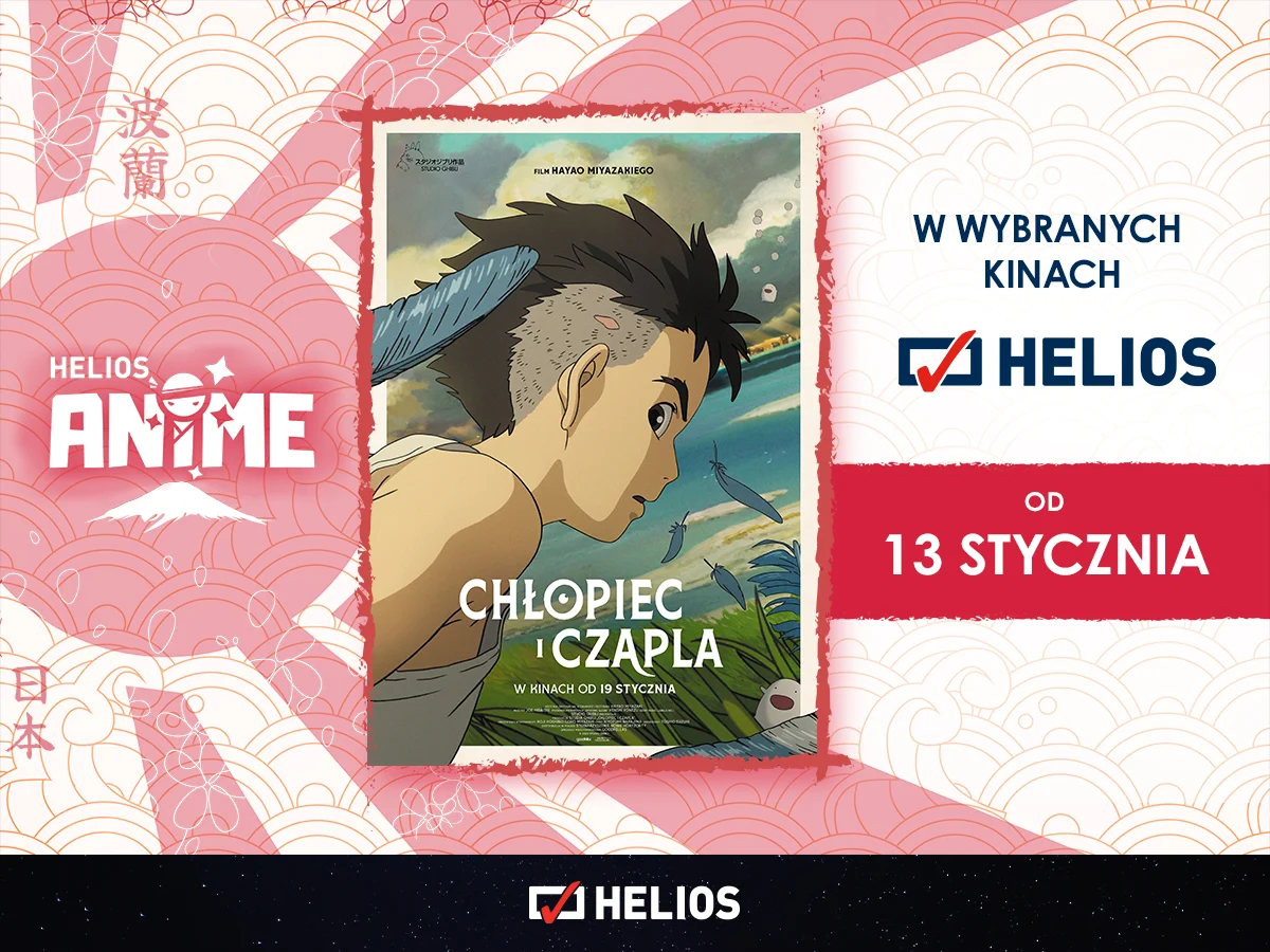 W najbliższym tygodniu cykl Kino Konesera pojawi się w Heliosie aż dwukrotnie! Poza poniedziałkowymi projekcjami, sieć przygotowała specjalne niedzielne seanse, poświęcone filmom oscarowym. Już 17 marca odbędą siępokazy tytułu „Chłopiec i czapla”, który otrzymał statuetkę dla najlepszej animacji. Dzieło Hayao Miyazakiego opowiada o młodym Mahito, próbującym poradzić sobie ze śmiercią mamy. Niespodziewanie zaczyna odwiedzać go czapla, mówiąca ludzkim głosem.