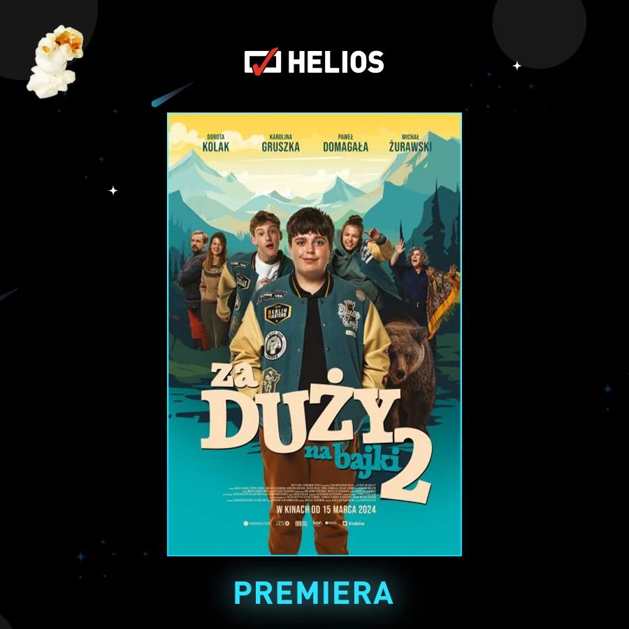 Marcowy repertuar Heliosa obfituje w gorące premiery – na kinomanów czekają zarówno produkcje polskie, jak i zagraniczne. W nadchodzącym tygodniu na ekranach pojawią się między innymi: film familijny „Za duży na bajki 2”, horror „Urojenie” oraz dokument „Budda. Dzieciak ‘98”. Widzowie będą mogli również zobaczyć przeboje ostatnich tygodni i rozmaite cykle specjalne.