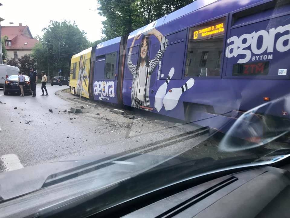 Przed godziną 11 w Katowicach na alei Korfantego, na wysokości Sądu Okręgowego, wykoleił się tramwaj linii 13, który jechał w kierunku Siemianowic Śląskich. Tramwaj wypadł z torów i uszkodził samochód marki Kia.