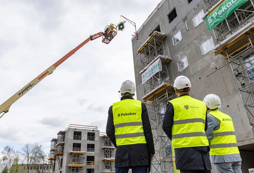 – Bardzo dziękuję prezydentowi Katowic panu Marcinowi Krupie i prezesowi KTBS-u panu Januszowi Olesińskiemu, który podjął odważną decyzję o zastosowaniu tej innowacyjnej technologii. Dziękuję naszym pracownikom budowy i profesjonalnej ekipie monterskiej Pekabeksu, która stanęła na wysokości zadania. Realizacja montażu konstrukcji prefabrykowanej osiedla zajęła 3,5 miesiąca wliczając w to okres zimowy. Jestem z Waszej pracy i zaangażowania bardzo dumny i jestem dumny, że możemy wspierać polskie samorządy w kwestiach mieszkaniowych – mówił podczas wydarzenia Robert Jędrzejowski, prezes zarządu Pekabex S.A.