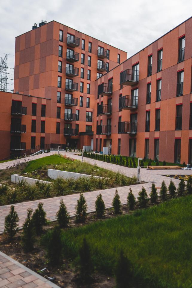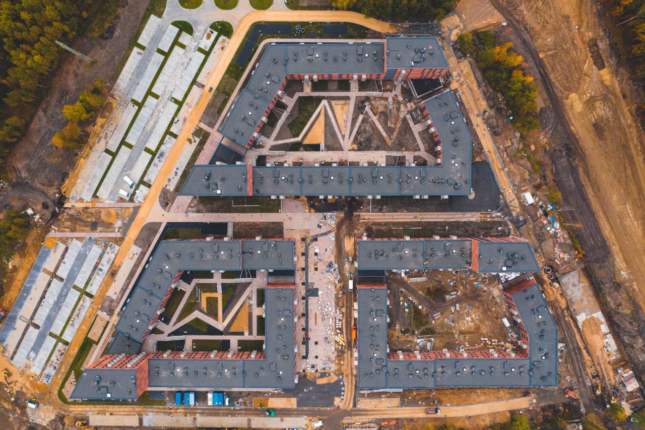 Trwają także prace w otoczeniu osiedla i na jego dziedzińcach – w kwartale A dziedziniec oraz nasadzenia drzew i roślin zostały już wykonane, na kwartale B są wykonane w połowie. Prace w zakresie parkingów są na ukończeniu.