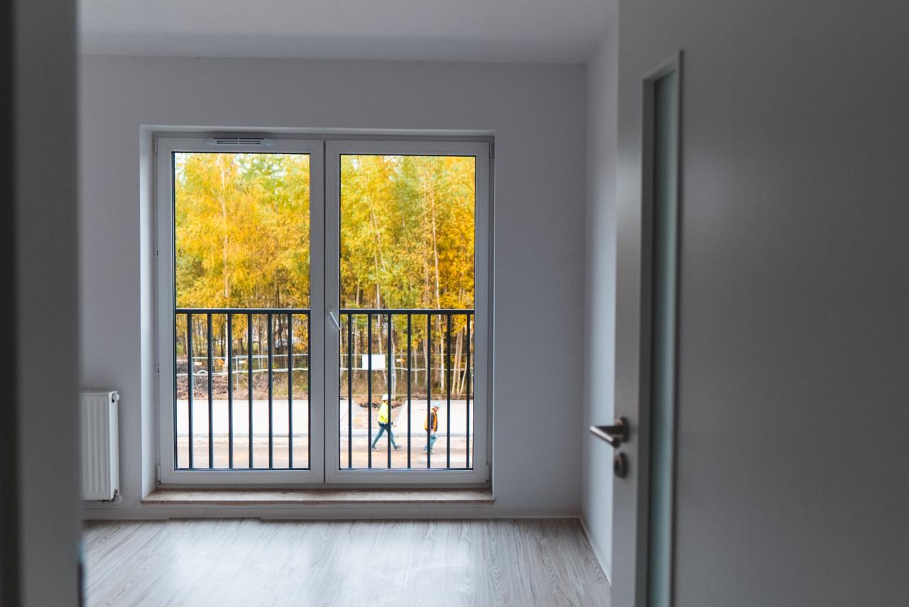 Z kolei w kwartale B w mieszkaniach trwa malowanie ścian oraz montaż paneli podłogowych i podobnie jak w kwartale A – montowane są drzwi pokojowe i trwają prace wykończeniowe klatek schodowych.
