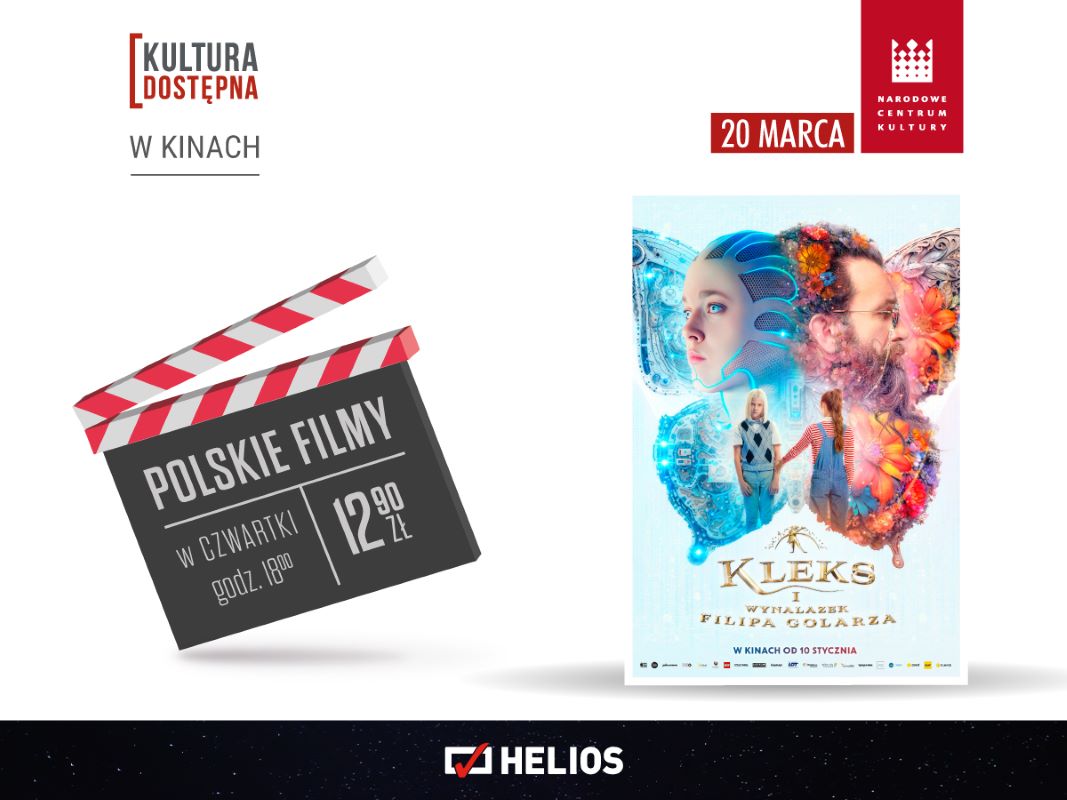 W czwartek, 20 marca, odbędą się projekcje w ramach cyklu Kultura Dostępna. Tym razem na widzów czeka familijny tytuł „Kleks i wynalazek Filipa Golarza”. Po letniej przerwie Ada Niezgódka wraca do Akademii, żeby rozwikłać tajemnicę pochodzenia swojego przyjaciela – Alberta. W tym samym czasie profesor Kleks wyrusza do realnej rzeczywistości, żeby odnaleźć kolegę sprzed lat, a wynalazek Filipa Golarza staje się zagrożeniem dla dziecięcej wyobraźni. . .