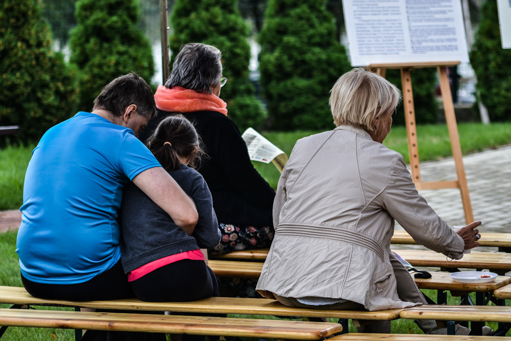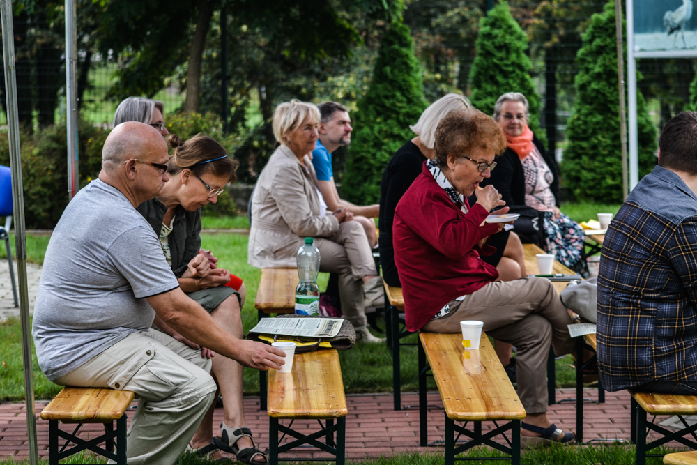 W tym roku Narodowe Czytanie odbyło się w filii 14 Miejskiej Biblioteki Publicznej, a nie w parku Kościuszki, jak to bywało uprzednio. Pogoda, na początku, okazała się niezbyt łaskawa i trochę straszyła przelotnymi opadami, ale od około 13.30 wyszło słońce, a na teren ogrodu zawitały kolejne osoby.