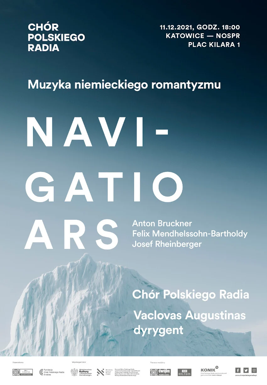W koncercie NAVIGATIO ARS – MUZYKA NIEMIECKIEGO ROMANTYZMU Chór Polskiego Radia sięgnie do niemieckiej spuścizny romantycznej, prezentując utwory trzech niezwykle wszechstronnych kompozytorów, tworzących muzykę niemal we wszystkich gatunkach uprawianych w XIX wieku: Antona Brucknera, o którym Albert Einstein twierdził, że jego „mocna i monumentalna” twórczość ma „charakter nieomal pozaczasowy”; znanego z emocjonalnych, śpiewnych i udramatyzowanych kompozycji Felixa Mendelssohna-Bartholdy’ego oraz Josefa Rheinbergera – najmłodszego w tym gronie, pochodzącego z Liechtensteinu kompozytora i organisty, specjalizującego się w utworach religijnych.