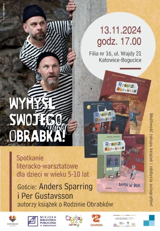 W Miejskiej Bibliotece Publicznej w Katowicach odbędzie się niezwykłe wydarzenie związane z serią książek o rodzinie Obrabków. Dnia 13 listopada 2024 roku o godzinie 17:00, do Filii nr 16 zawitają twórcy tej popularnej serii – pisarz Anders Sparring, ilustrator Per Gustavsson oraz tłumaczka Agnieszka Stróżyk.