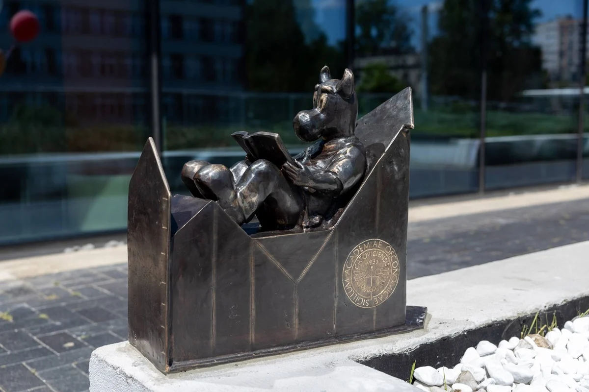 Bebok, stworzony z metalowych elementów i rzeźbiony z dbałością o szczegóły, stał się nie tylko ozdobą przestrzeni przed budynkiem, ale także symbolem kreatywności i nowoczesności, które są integralną częścią życia akademickiego na tej renomowanej uczelni.