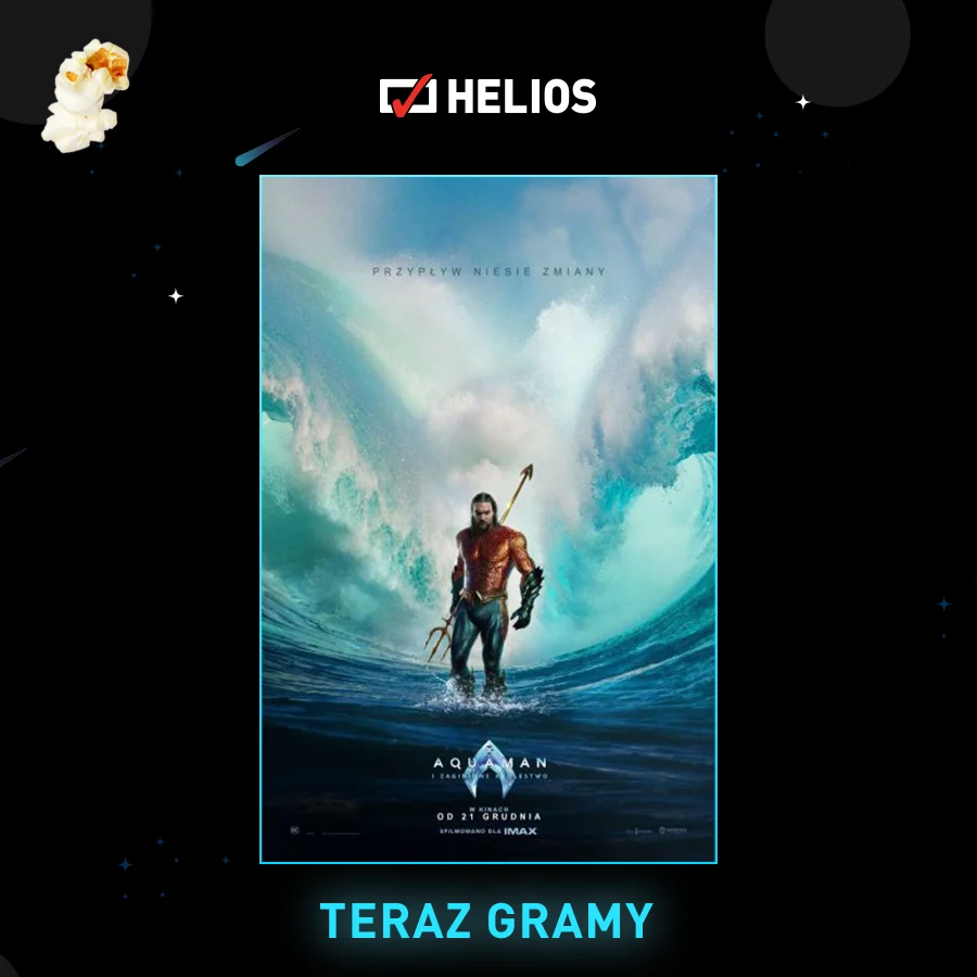 W Heliosie widzowie mogą obejrzeć także inne gorące nowości, do których należy „Aquaman i zaginione królestwo”. Kontynuacja przeboju o podwodnym świecie ukazuje bohatera w krytycznym momencie – nad Atlantydę nadciąga bowiem złowroga siła Czarnej Manty. Aquaman musi zawrzeć sojusz ze swoim przyrodnim bratem, Ormem, aby uniknąć katastrofy. W warszawskim kinie sieci tytuł będzie dostępny w ukraińskiej wersji językowej.
