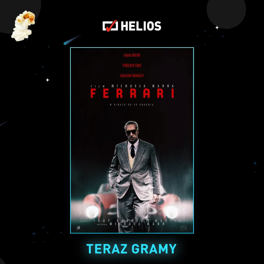 Natomiast propozycją opartą na faktach jest film biograficzny „Ferrari”, przybliżający najtrudniejsze momenty z życia Enzo Ferrariego. W jednym roku jego problemy zawodowe i osobiste krzyżują się ze sobą, a wytwórnia samochodów Ferrari znajduje się na granicy bankructwa. Bohater decyduje się więc postawić wszystko na jedną kartę i wystawia swoich zawodników do piekielnie trudnego wyścigu, Mille Miglia. Zwycięstwo to szansa na uratowanie firmy, a przegrana oznacza stratę wszystkiego.