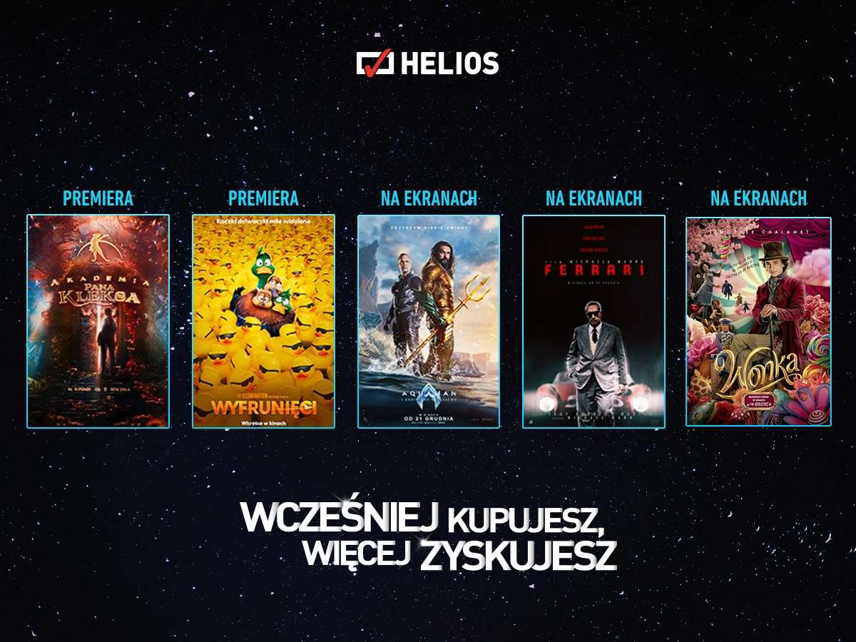 Początek roku to doskonały moment na pozytywną wizytę w kinie! Szczegóły dotyczące wszystkich seansów dostępnych w aktualnym repertuarze można znaleźć na stronie www.helios.pl, w aplikacji mobilnej oraz w kasach kin Helios w całej Polsce.
