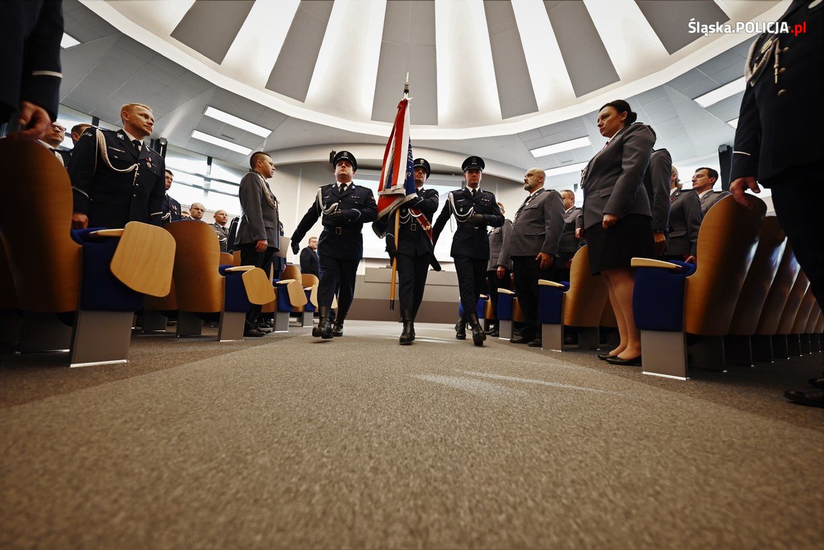 Uroczystość rozpoczęła się od złożenia meldunku Pierwszemu Zastępcy Komendanta Wojewódzkiego Policji w Katowicach insp. Mariuszowi Krzystyniakowi przez dowódcę uroczystości. Następnie został wprowadzony sztandar, a sygnalista odegrał „Hasło Wojska Polskiego”.