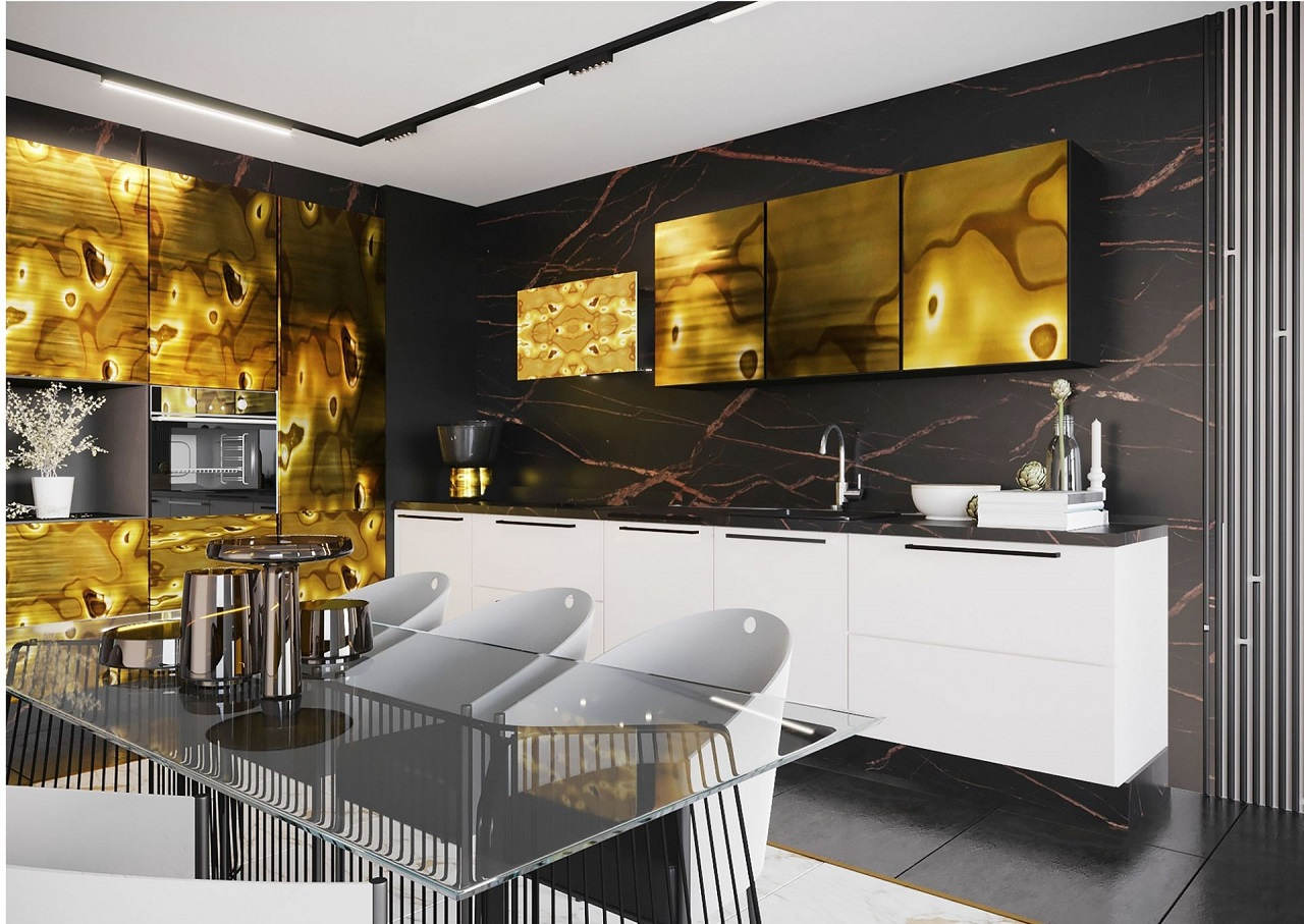Linie papilarne, wzburzone morskie fale na dalekim Morzu Północnym, wyboista powierzchnia Czerwonej Planety i magma wulkaniczna to tylko niektóre inspiracje dla jedynej w swoim rodzaju kolekcji okapów kuchennych wykończonych szkłem artystycznym. Motywem przewodnim serii ArtGlass są kolory i wzory. Mamy do wyboru standardową biel i czerń, ale także szlachetne złoto i srebro. To, co zaskakuje to niespotykana nigdzie indziej faktura. Barwa frontowej tafli zmienia się w zależności od kąta padania promieni słonecznych tworząc wyjątkowy spektakl dla domowników i gości. Decydując się na pochłaniacz kominowy z tej serii mamy już głównego bohatera całej aranżacji. Zabudowa meblowa, akcesoria, dodatki, sprzęty AGD powinny być stonowane i oszczędne w wyrazie tak, by całość tworzyła synergiczną, pełną klasy całość.