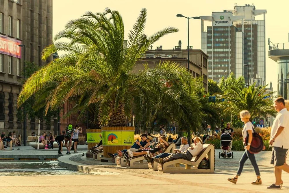 Zdążyły już na stałe wrosnąć w krajobraz centrum Katowic. Feniksy kanaryjskie wracają po jesienno-zimowej przerwie. Od dziś (18.05.) w ich cieniu będzie można odpoczywać w rejonie sztucznej Rawy.