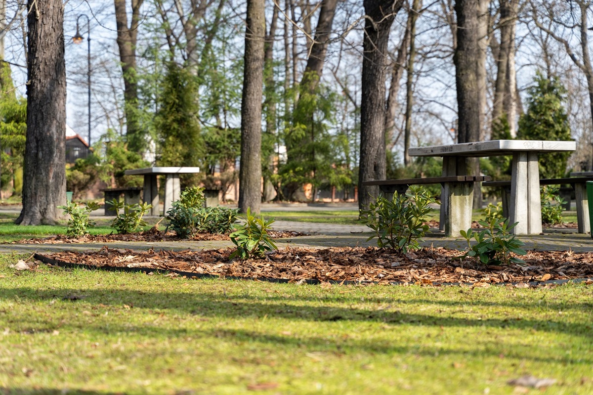 – Projekt przewidywał uzupełnienie istniejącej w parku roślinności nowymi nasadzeniami. Wśród roślin pojawiły się m.in. barwinek pospolity oraz mahonia pospolita. Oprócz tego jest kilka rodzajów różaneczników – o kwiatach m.in. różowych, białych, fioletowych. Na miejscu zasadzone zostały buki pospolite, które mają bardzo ozdobną, szeroką, zaokrągloną koronę. Oprócz tego zasadziliśmy również tawułę szarą, krzew o dekoracyjnych, łukowato wyginających się cienkich pędach – wymienia Mieczysław Wołosz, dyrektor Zakładu Zieleni Miejskiej.