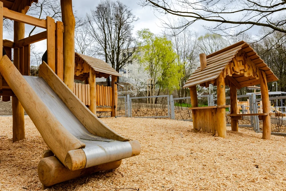 Po zakończeniu prac najmłodsi będą mogli korzystać z budowli wykonanych z bardzo wytrzymałego drewna – robinii akacjowej, które jest odporne na działanie warunków atmosferycznych. Wśród urządzeń jest m.in. ponad 3-metrowy domek ze zjeżdżalnią oraz dwa domki bez zjeżdżalni – większy o wysokości niewiele ponad 2 m, wyposażony m.in. w lunetę, oraz mniejszy o wysokości ok. 1,8 m. Dzieci będą mogły bawić się także na statku, do którego będzie możnawejść po schodkach. Z niego również jest poprowadzona zjeżdżalnia. Oprócz tego na miejscu zamontowane zostały również klasyczne urządzenia – okrągła karuzela, huśtawka ważka, podwójna huśtawka z wiszącymi siedziskami. Skorzystać można także z tyrolki, której długość to ponad 20 m.