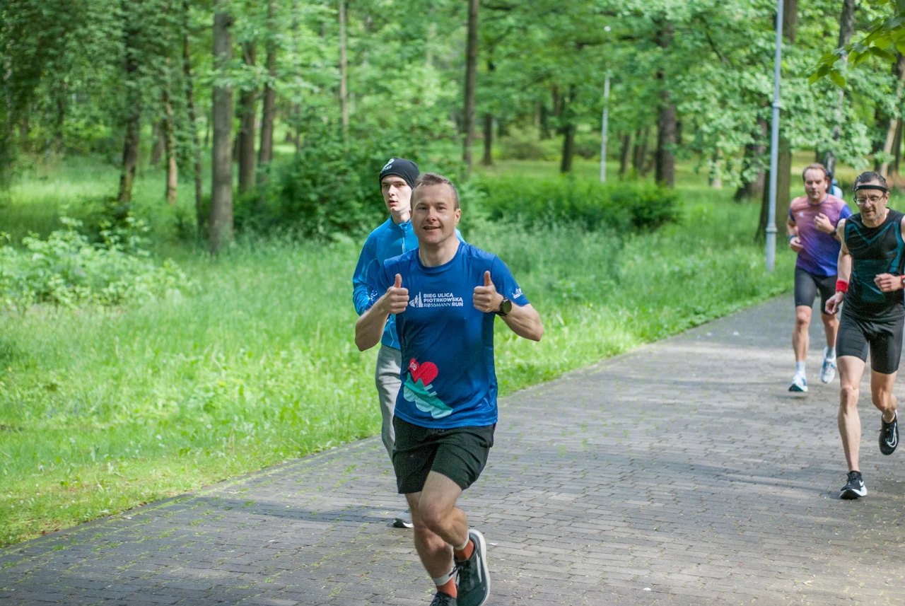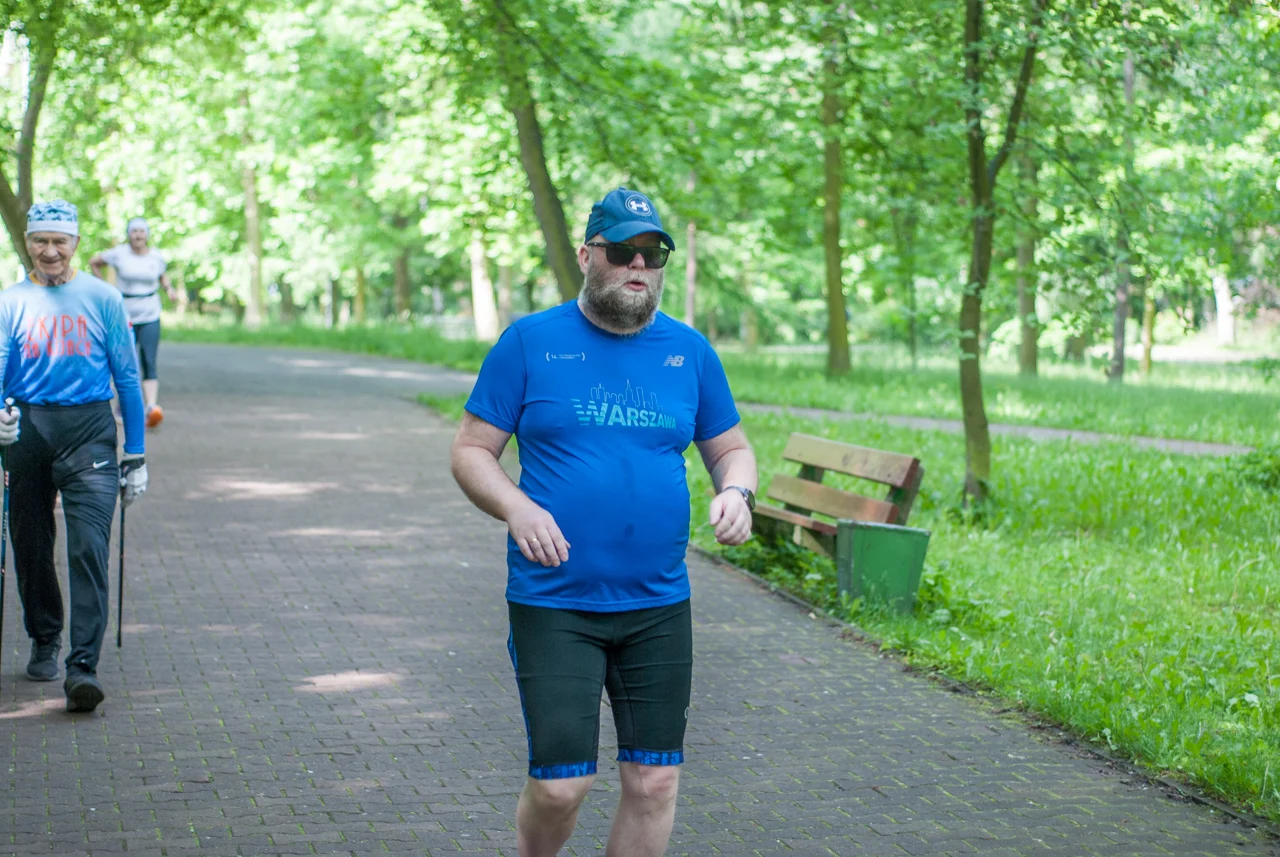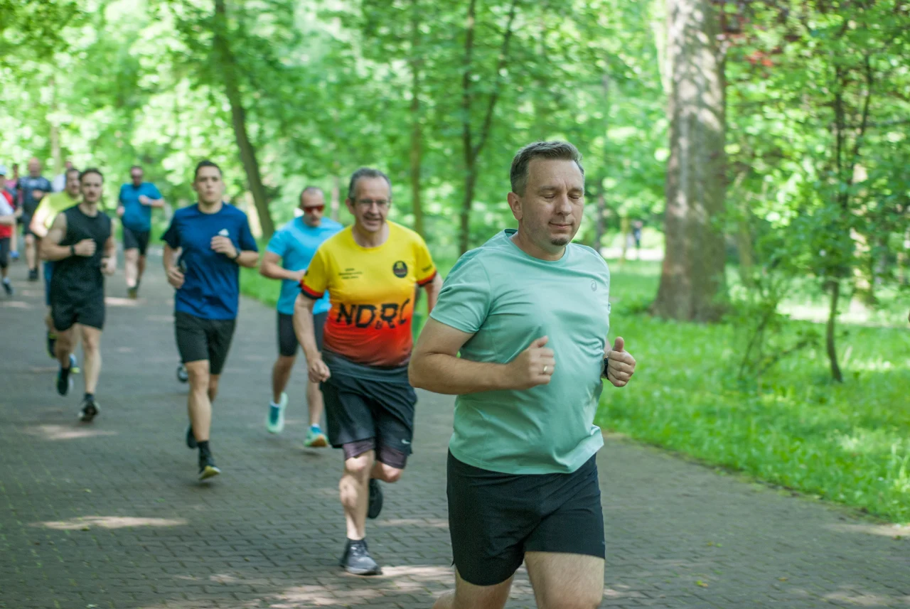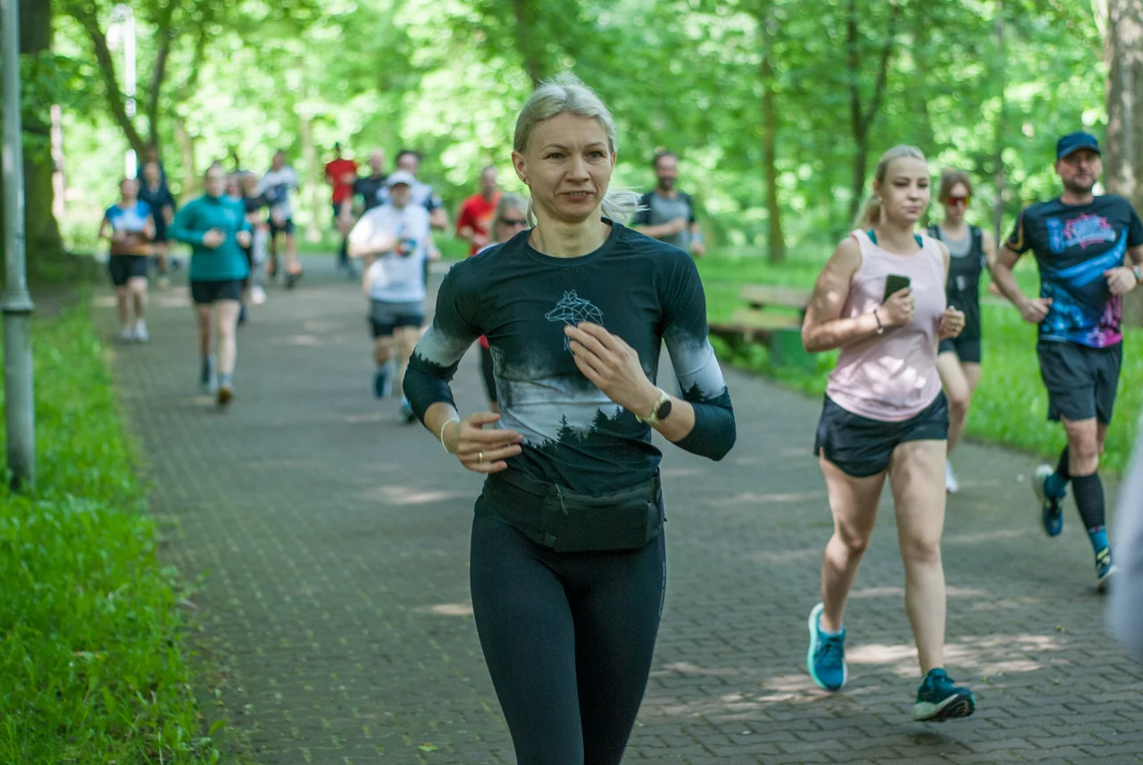 Kilka minut po odprawie debiutantów, strzelono sobie tradycyjne wspólne zdjęcie. Na samym początku odbył się bieg dedykowany najmłodszym uczestnikom, prowadzony po pętli w centralnej części parku. Główny peleton ruszył na trasę prowadzącą zielonymi (w końcu!) alejkami w parku Kościuszki chwilę po godzinie 9. W spotkaniu wzięła udział mniej więcej setka uczestników.