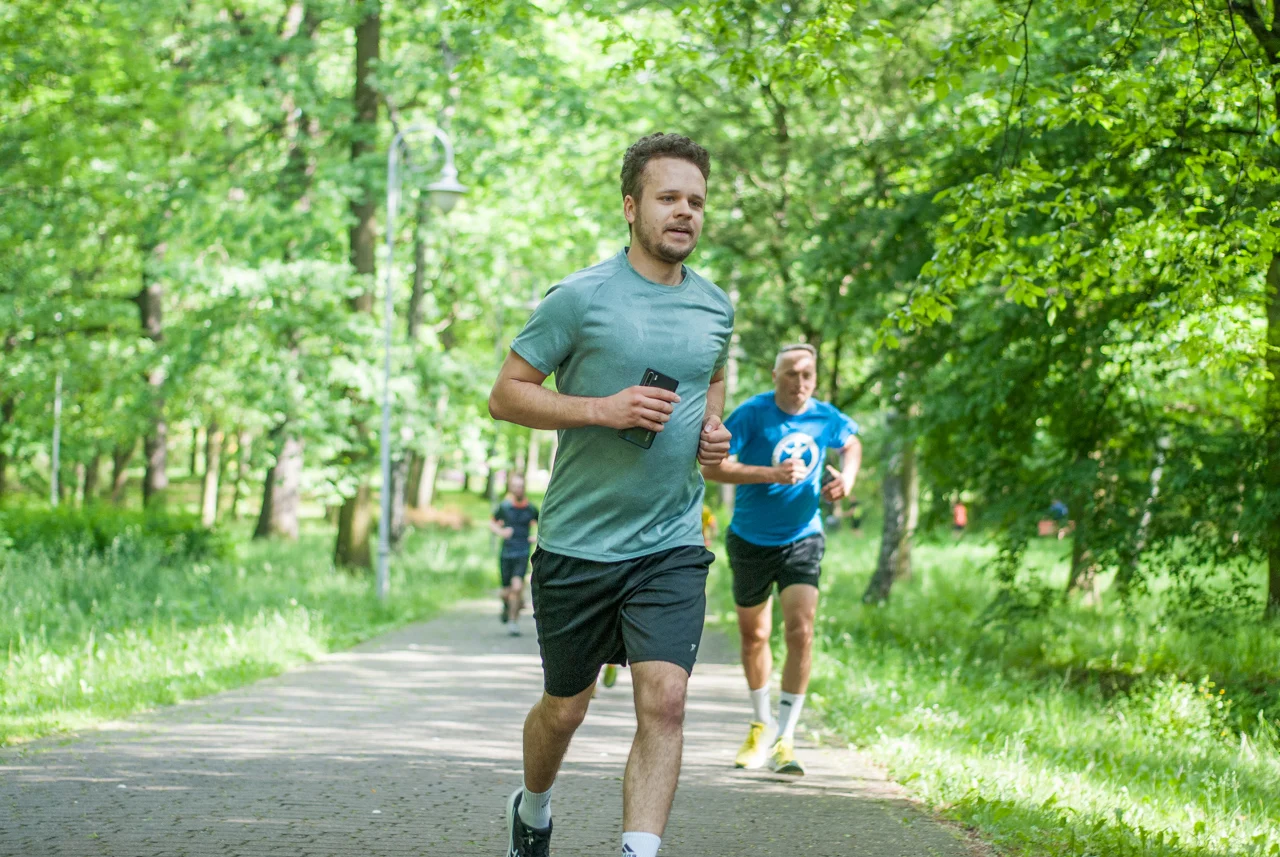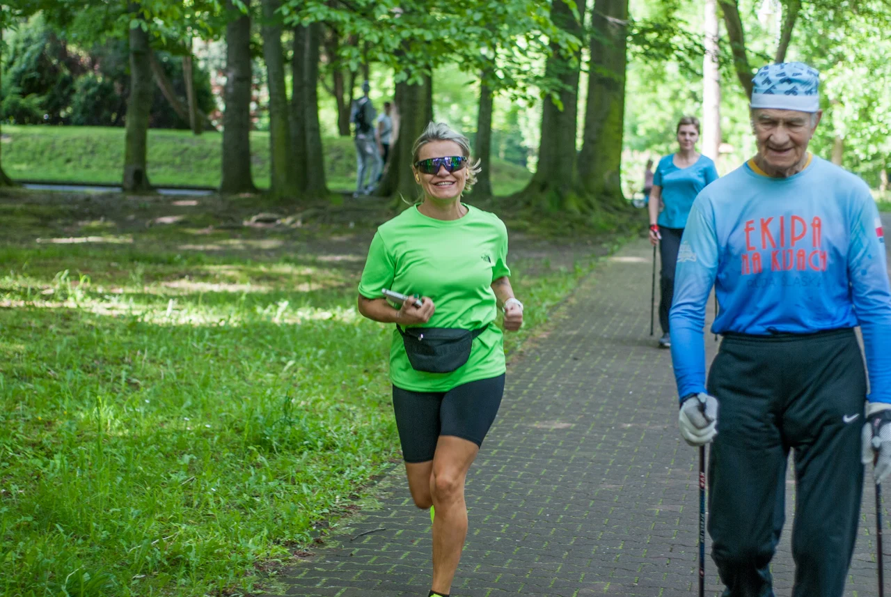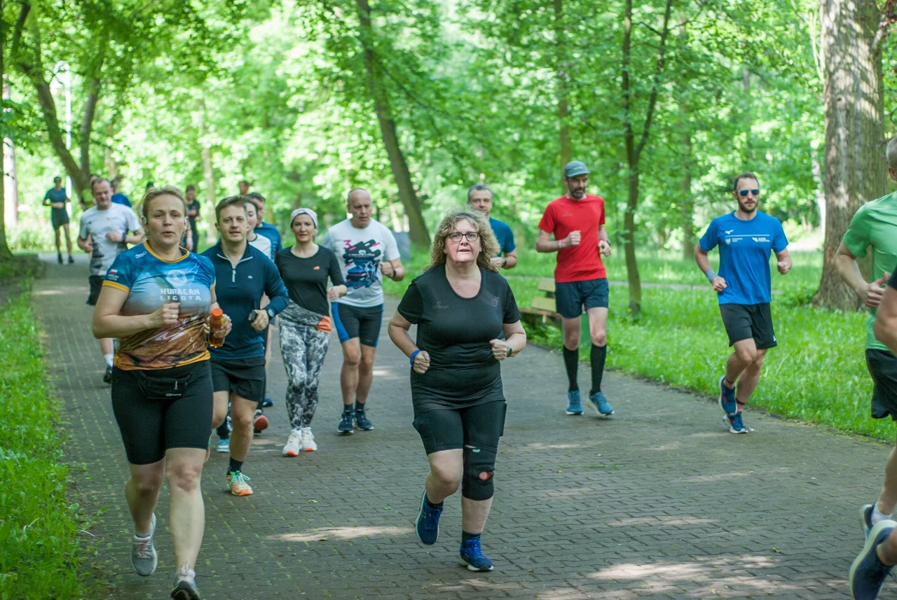 Jak co sobotę około setka biegaczy i kijkarzy wzięła udział w sportowych, rekreacyjnych zmaganiach. Choć pogoda z początku straszyła nieco pochmurnym niebem i lekkim chłodem, warunki do biegu (i zdjęć) okazały się świetne, bo chwilę przed startem za chmur wyszło słońce.