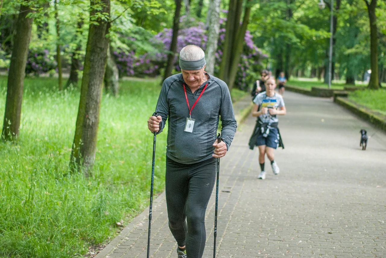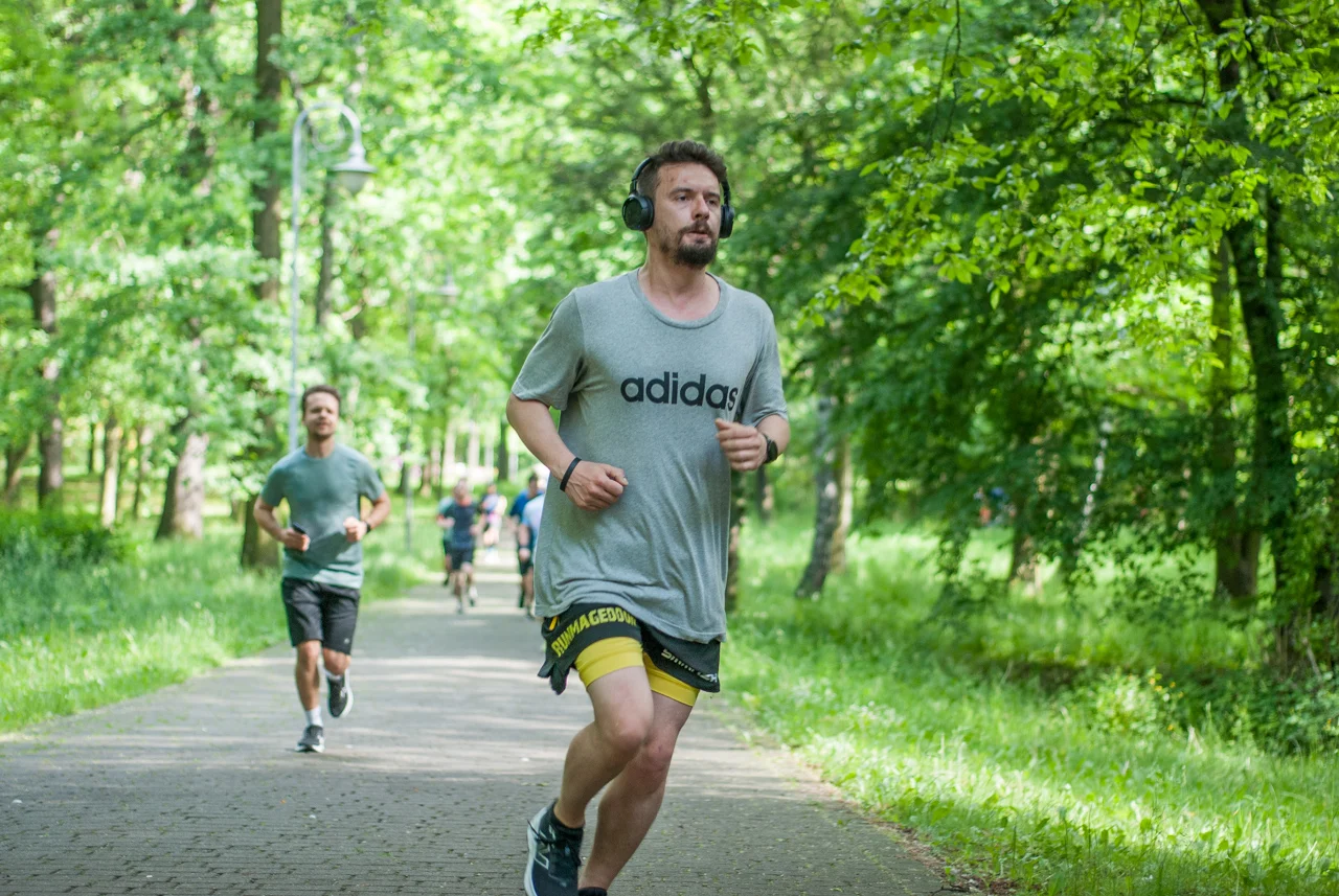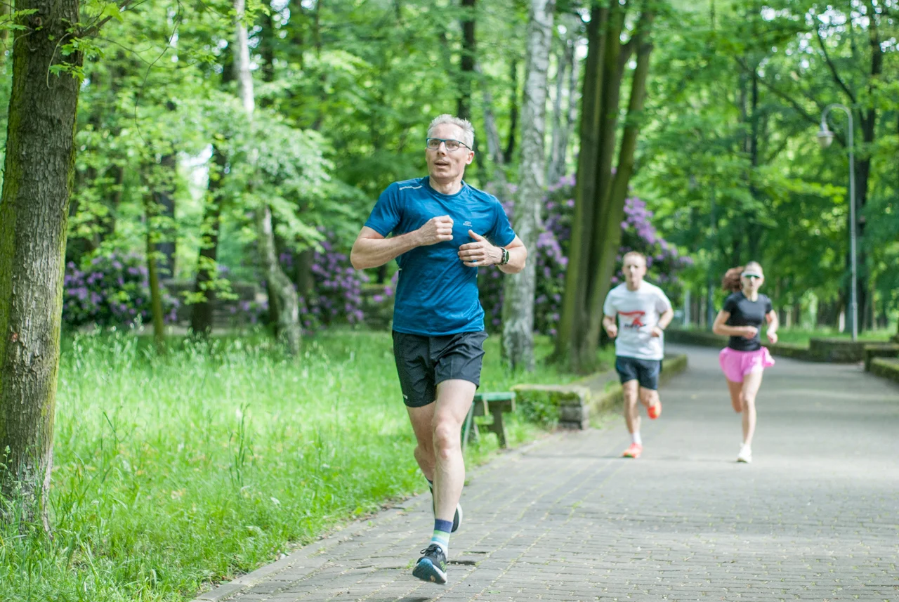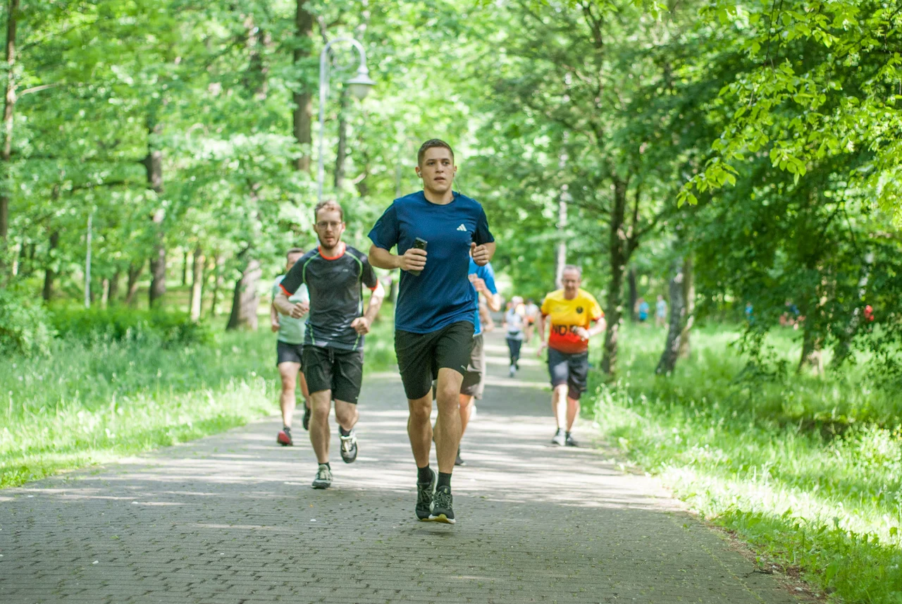 Jak co sobotę około setka biegaczy i kijkarzy wzięła udział w sportowych, rekreacyjnych zmaganiach. Choć pogoda z początku straszyła nieco pochmurnym niebem i lekkim chłodem, warunki do biegu (i zdjęć) okazały się świetne, bo chwilę przed startem za chmur wyszło słońce.