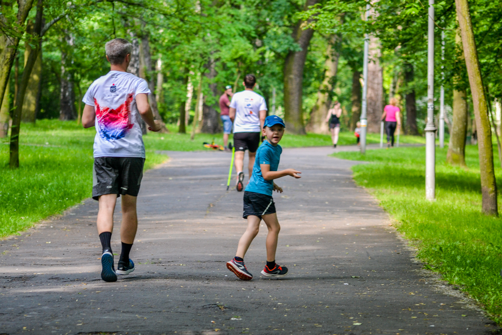 Kilkadziesiąt osób spotkało się w Parku Kościuszki na kolejnej edycji parkrun Katowice. I tym razem była dodatkowa okazja do świętowania: Dzień Dziecka.