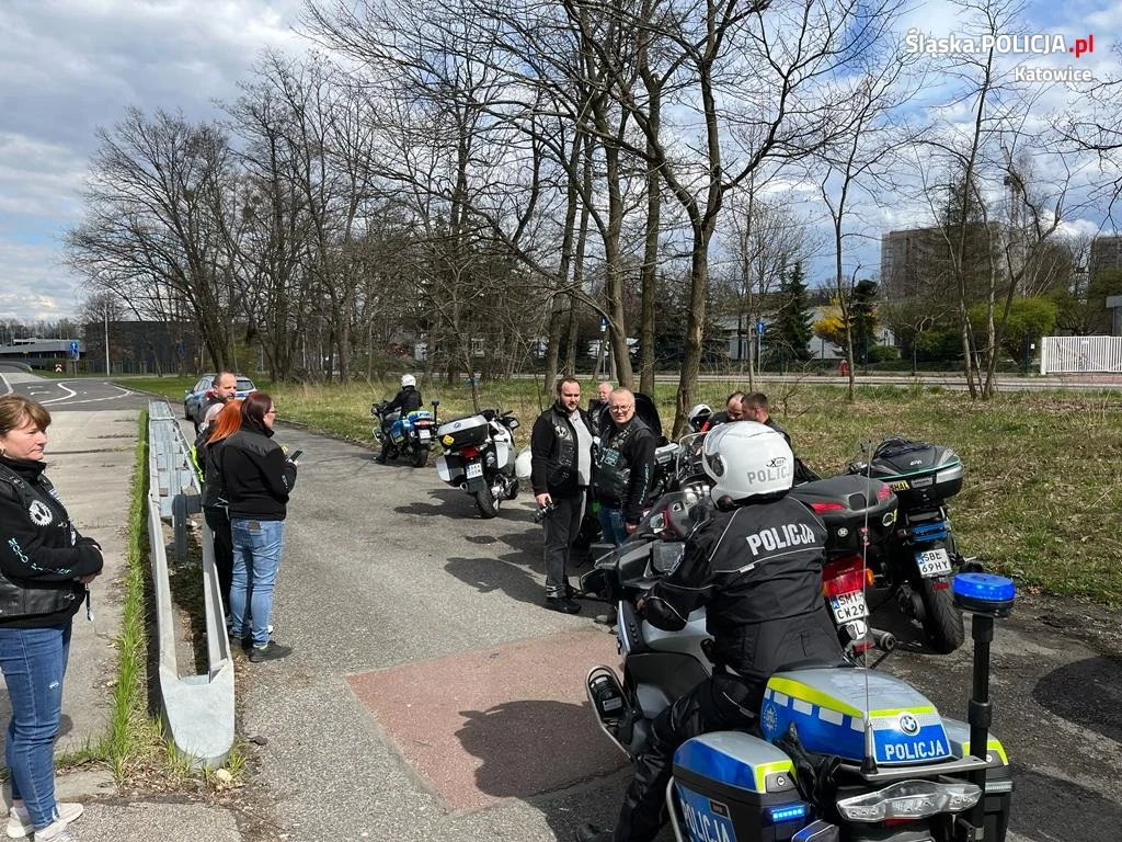 Policjanci Komendy Miejskiej Policji w Katowicach wraz z motocyklistami ze stowarzyszenia „Moto Pistons Górny Śląsk” przeprowadzili akcję „Patrz w lusterka — motocykle są wszędzie”.
