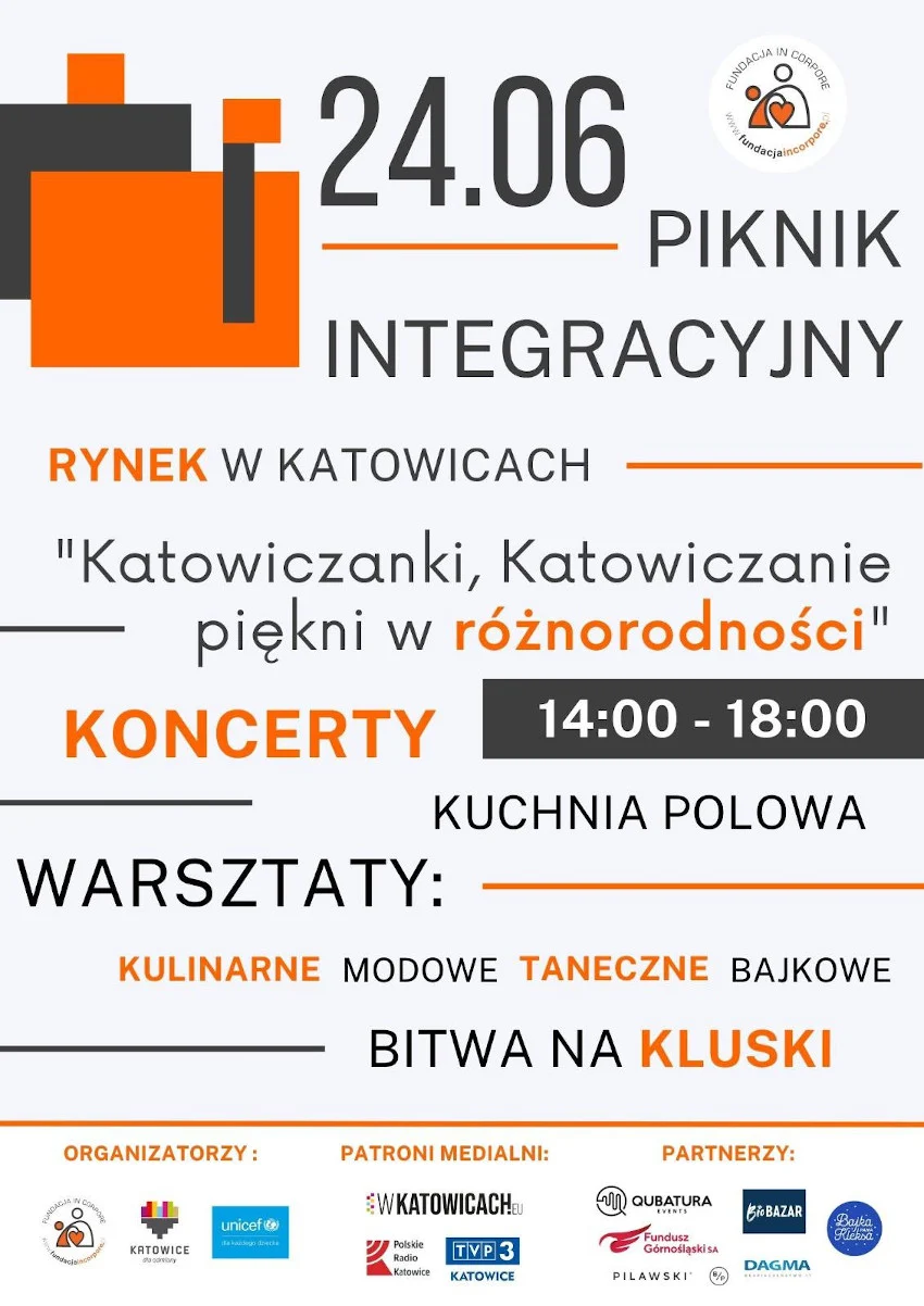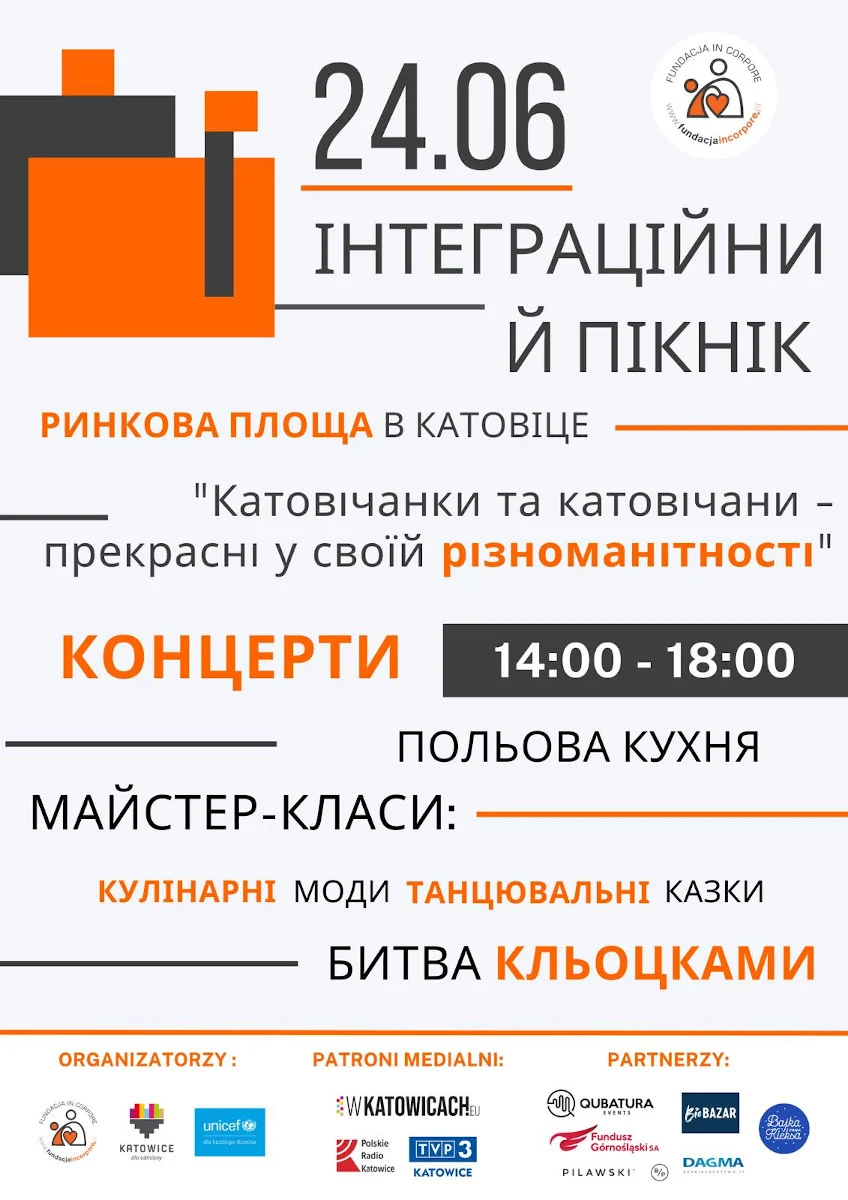 Już w sobotę, 24 czerwca od godz. 14:00 do godz. 18:00 na katowickim Rynku odbędzie się piknik integracyjny „Katowiczanki, Katowiczanie – piękni w różnorodności”. Będzie potańcówka, świetne i zdrowe jedzenie, różnego rodzaju warsztaty oraz inne atrakcje zarówno po polsku, jak i po ukraińsku.