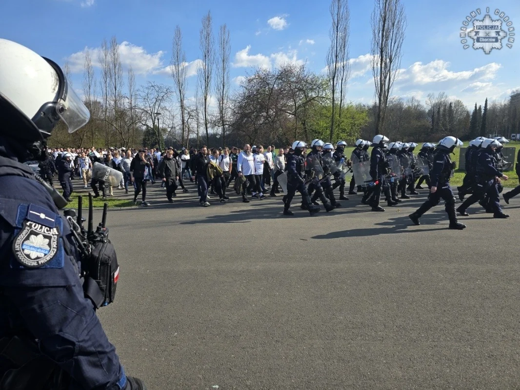 Wydarzenie, które zgromadziło ponad 25 tysięcy kibiców, w tym około 1200 fanów drużyny gości, zostało dokładnie zabezpieczone przez policję. Mundurowi z Chorzowa i Katowic działali wspólnie z funkcjonariuszami z innych miast, m.in. z Bielska-Białej, Krakowa, Rzeszowa, Częstochowy, Wrocławia, Legnicy i Opola.