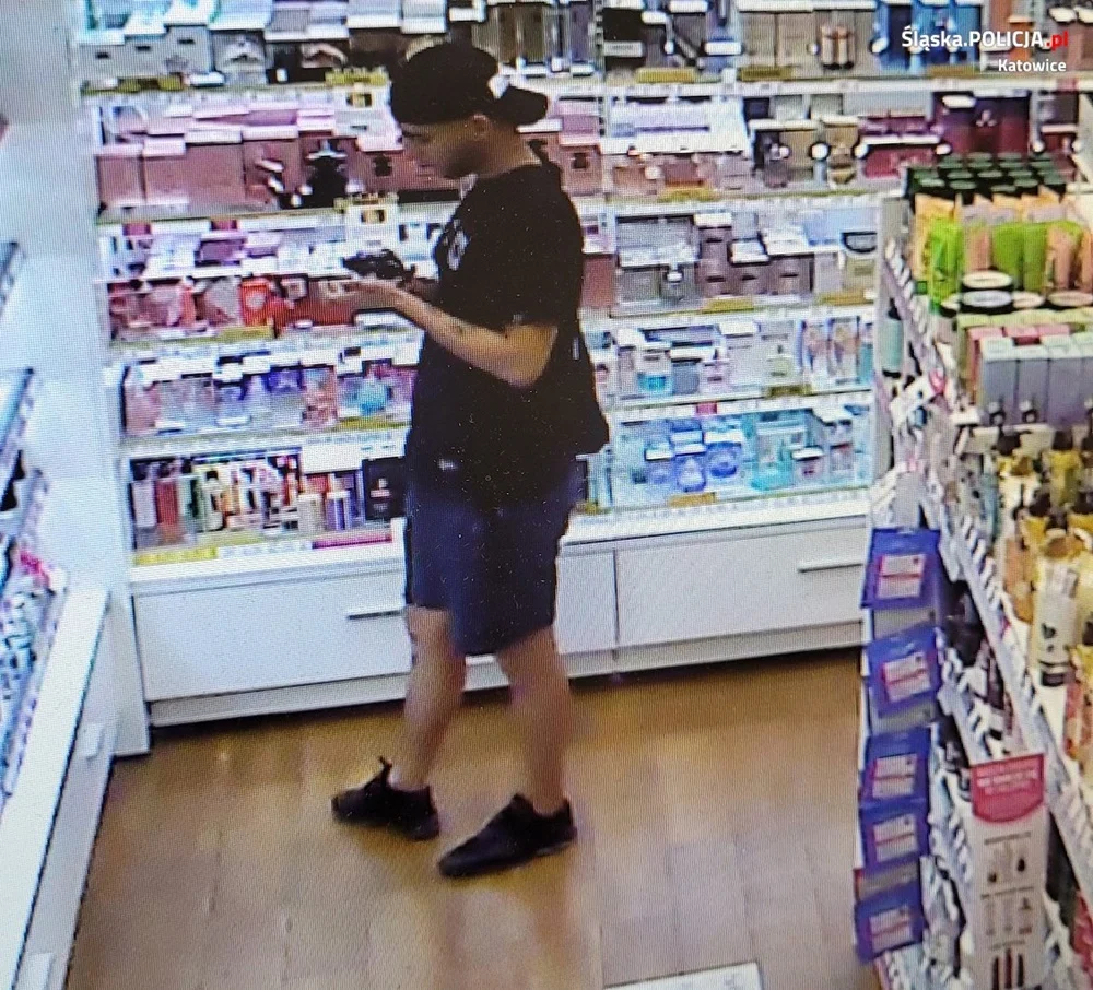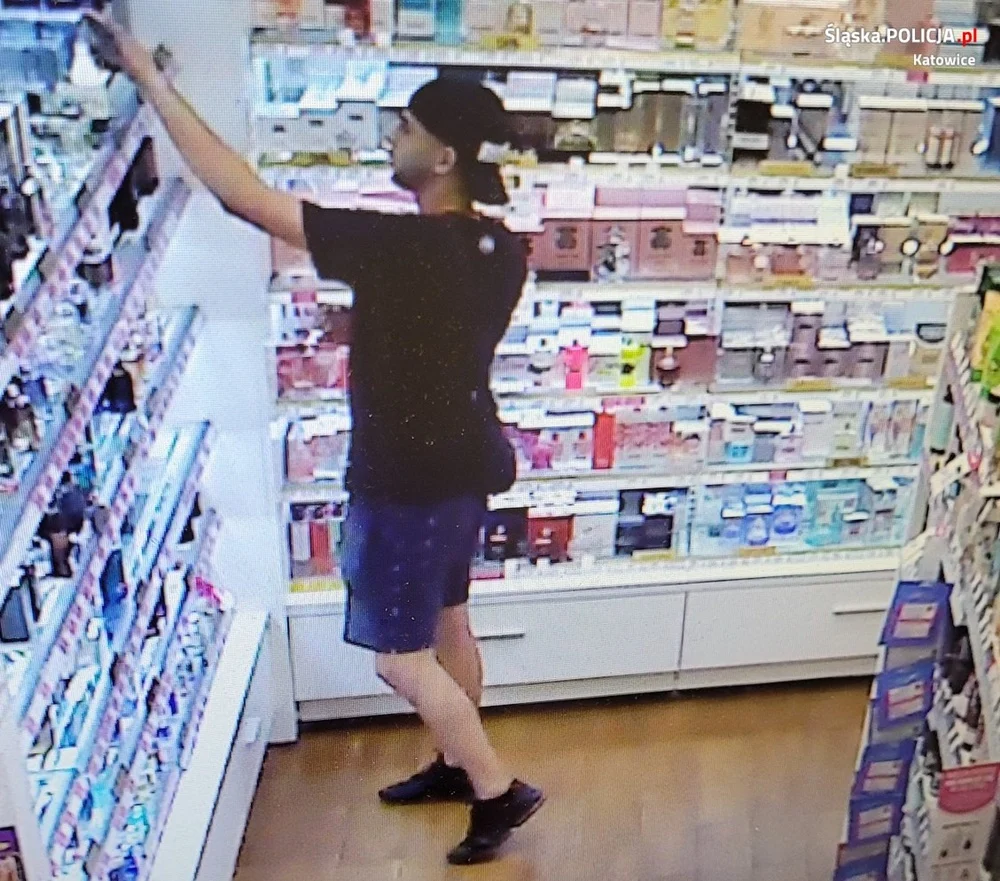 Widoczni na zdjęciach mężczyźni ukradli w drogerii przy ul. Roździeńskiego 200, kosmetyki o wartości prawie 900 zł. Wizerunek podejrzewanych zarejestrował monitoring.