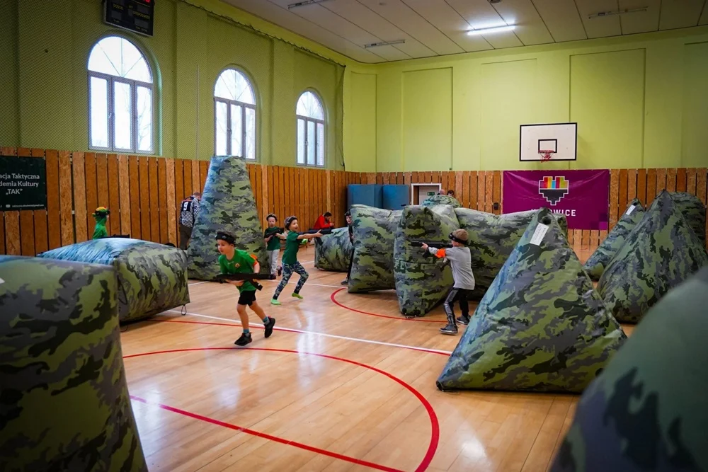Niezaprzeczalnym hitem ferii były także laserowe potyczki. LaserTag – sport zespołowy przypominający popularne gry typu Paintball czy ASG – przyciągnął wielu entuzjastów. Gracze otrzymywali repliki laserowe oraz opaski z czujkami, a specjalnie przygotowana arena z dmuchanymi przeszkodami zapewniała dynamiczną i ekscytującą rozgrywkę. To nietypowa forma aktywności, która nie tylko dostarczała emocji, ale również sprzyjała zdrowemu ruchowi i rywalizacji.
