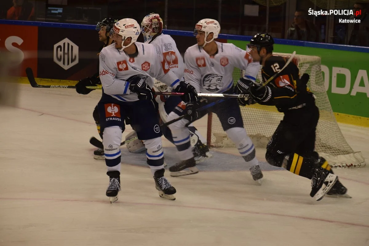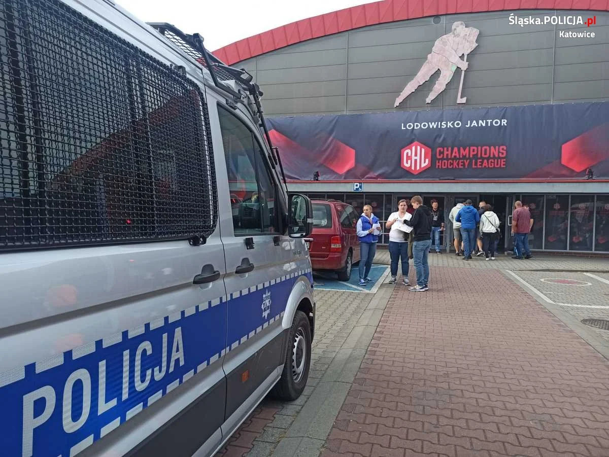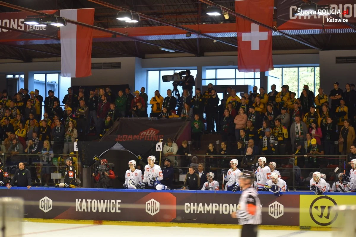 Natomiast późnym popołudniem mundurowi zabezpieczali Hokejową Ligę Mistrzów, gdzie na lodowisku Jantor GKS Katowice podjął szwajcarską drużynę ZSC Lions Zurych. Pomimo dużych emocji na trybunach, które zgromadziły 1,3 tys. kibiców i ostatecznym zwycięstwie katowickiej drużyny zabezpieczenie odbyło się bez bez incydentów i kibice wrócili bezpiecznie po meczu do swoich domów.