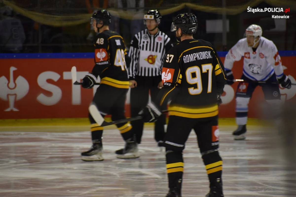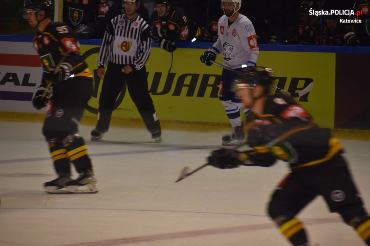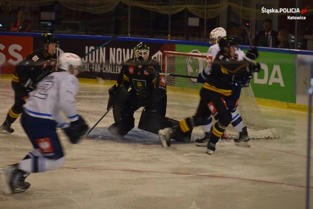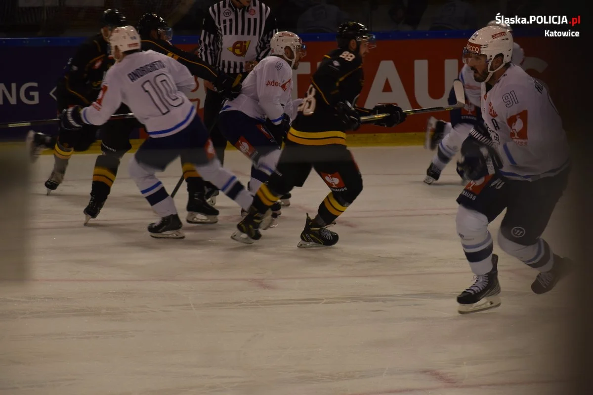 Natomiast późnym popołudniem mundurowi zabezpieczali Hokejową Ligę Mistrzów, gdzie na lodowisku Jantor GKS Katowice podjął szwajcarską drużynę ZSC Lions Zurych. Pomimo dużych emocji na trybunach, które zgromadziły 1,3 tys. kibiców i ostatecznym zwycięstwie katowickiej drużyny zabezpieczenie odbyło się bez bez incydentów i kibice wrócili bezpiecznie po meczu do swoich domów.