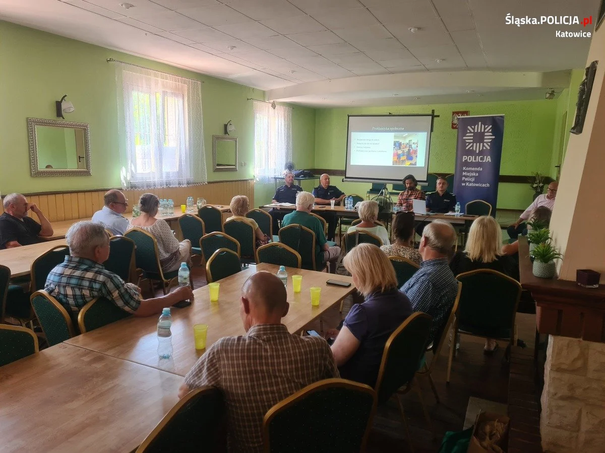 Przeprowadzona debata umożliwiła przybliżenie działania ,,Krajowej Mapy Zagrożeń Bezpieczeństwa” oraz aplikacji ,,Moja Komenda” stanowiących wsparcie Policji na rzecz diagnozowania aktualnych zagrożeń. Komendanta Komisariatu Policji IV w Katowicach mł. insp. Ireneusz Szafranek, Naczelnik Wydziału Prewencji Komisariatu Policji IV w Katowicach kom. Maksymilian Tyl, p.o. Kierownika Rewiru Dzielnicowych st. asp. Krzysztof Fąfera, a także funkcjonariusz Wydziału Ruchu Drogowego Komendy Miejskiej Policji w Katowicach sierż. szt. Grzegorz Zając oraz dzielnicowy Komisariatu Policji IV w Katowicach sierż. szt. Robert Szczerbiński odpowiadali na pytania uczestników debaty. Omówili zebranym koncepcje ,,Dzielnicowy Bliżej Nas” oraz przedstawili zdiagnozowane problemy w rejonach służbowych oraz realizowane plany priorytetowe dotyczące poprawy bezpieczeństwa. Przypomnieli mieszkańcom, że każdy dzielnicowy ma przypisany do swojego rejonu służbowego telefony służbowe oraz adresy e-mailowe. Kolejno przekazali informację jak zwiększyć bezpieczeństwo w miejscu zamieszkania, działce i na ulicy- wskazując istotne elementy zachowania w życiu codziennym tj. w domu i na ulicy wpływające na bezpieczeństwo mieszkańców. Policjanci przedstawi programy i akcje profilaktyczne przeprowadzane na terenie miasta Katowice, w tym skierowane do seniorów. Omówili zebranym zagrożenia związane z przestępczością dotyczącą osób starszych: oszustw na tzw. policjanta lub wnuczka oraz jak się chronić przed takimi zagrożeniami, a także kampanię #ZnamTeNumery. Podczas debaty uczestnicy spotkania zgłaszali problemy, jakie zauważają w ich miejscu zamieszkania oraz rozmawiali o nich z policjantami dzielnicowym odpowiedzialnymi za omawiany rejon służbowy. Kolejna debata wkrótce.