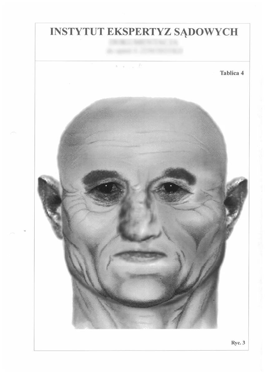 - Rysopis: wiek w chwili śmierci około 40-60 lat (ur. ok. 1963-1983 r.), 180 cm wzrostu, włosy koloru brązowego.