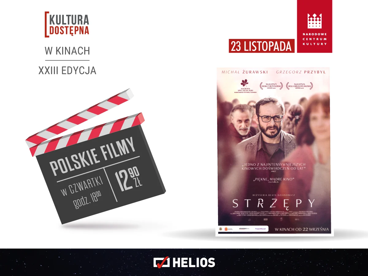 W czwartek, 23 listopada, na ekranach zagości cykl Kultura Dostępna. Kinomani będą mogli zobaczyć poruszający dramat „Strzępy”. Rodzina mierzy się w nim z chorobą Alzheimera ukochanego dziadka. Senior zaczyna zachowywać się coraz bardziej nietypowo, czym łamie konwenanse i normy społeczne. Nasilające się symptomy sprawiają, że relacje w pozornie idealnej rodzinie, wystawione są na próbę, a przemilczane przez lata pretensje wychodzą na światło dzienne.