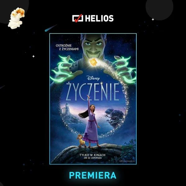 W środę, 22 listopada, na ekranach zagości również premiera ze studia Disney, czyli animacja „Życzenie”. Przeniesie ona widzów do magicznego królestwa Rosas, w którym mieszka nastoletnia Asha. Dziewczyna wyczuwa nadciągające niebezpieczeństwo ze strony władcy krainy, Magnifiko. Dlatego wraz z wiernym towarzyszem, koziołkiem Valentino, postanawiają stawić mu czoła. Na ratunek przybędzie im prawdziwa Gwiazdka z nieba, chcąca spełnić życzenie Ashy i pomóc w ocaleniu mieszkańców. Bohaterowie udowodnią, że wola odważnego człowieka w połączeniu z kosmiczną mocą może pokonać wszystkie trudności.
