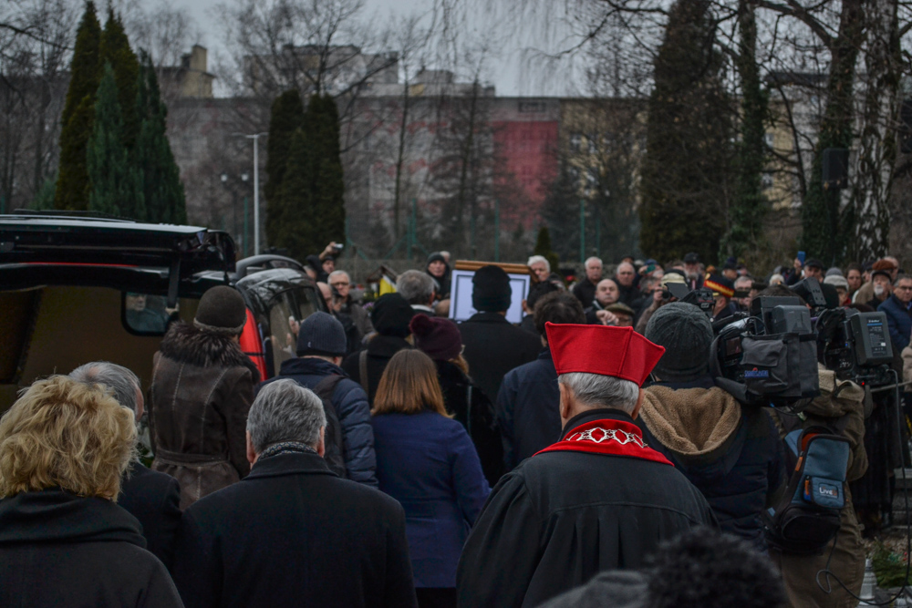 Na pogrzebie zjawiły się setki osób, z Katowic, rodzinnych Szopienic i całego kraju. Artyści, współpracownicy (jak Zbigniew Zamachowski czy Anna Dymna), politycy, przedstawiciele mediów, kleru. W towarzystwie orkiestry i służb mundurowych, kondukt ruszył na cmentarz przy ul. Sienkiewicza. Prochy reżysera złożono do grobu, który szybko pokrył się wieńcami kwiatów. Na jego cześć żołnierze oddali salwę honorową.